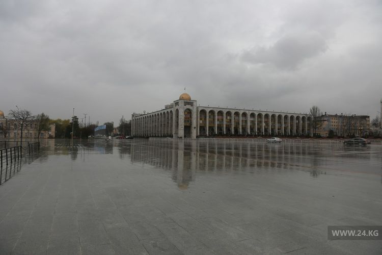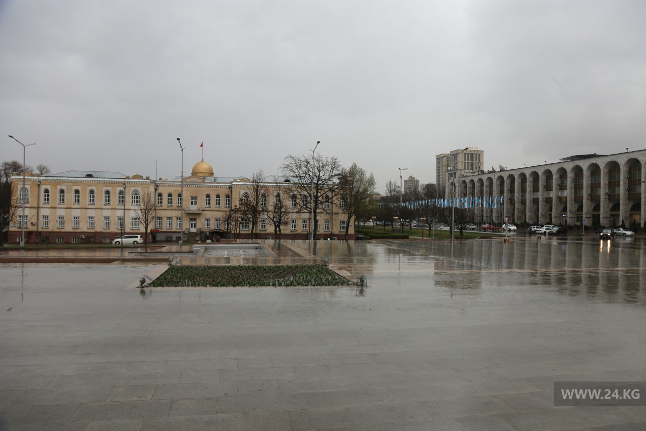 Абсолютно пустую площадь Ала-Тоо без единого человека сфотографировал сегодня читатель 24-kg.com.