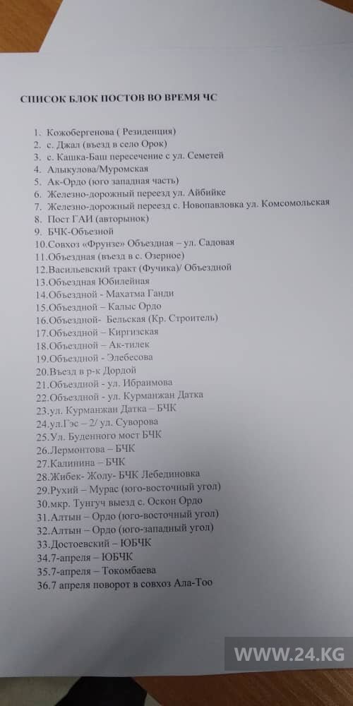 Отметим, что в распоряжении редакции имеется список блокпостов, установленных в городе. Известно, что они установлены около Государственной резиденции, на въездах и выездах из города, а также в жилмассивах.