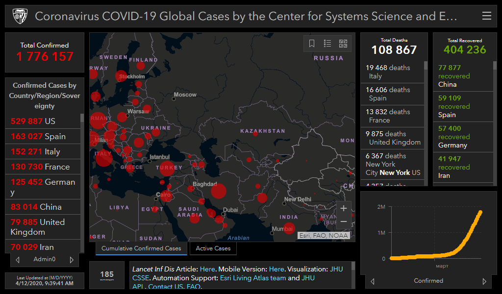 За последние сутки число людей, которые заразились новым коронавирусом, достигло 1 миллиона 777 тысяч 517. Об этом свидетельствуют данные онлайн-карты, разработанной учеными.