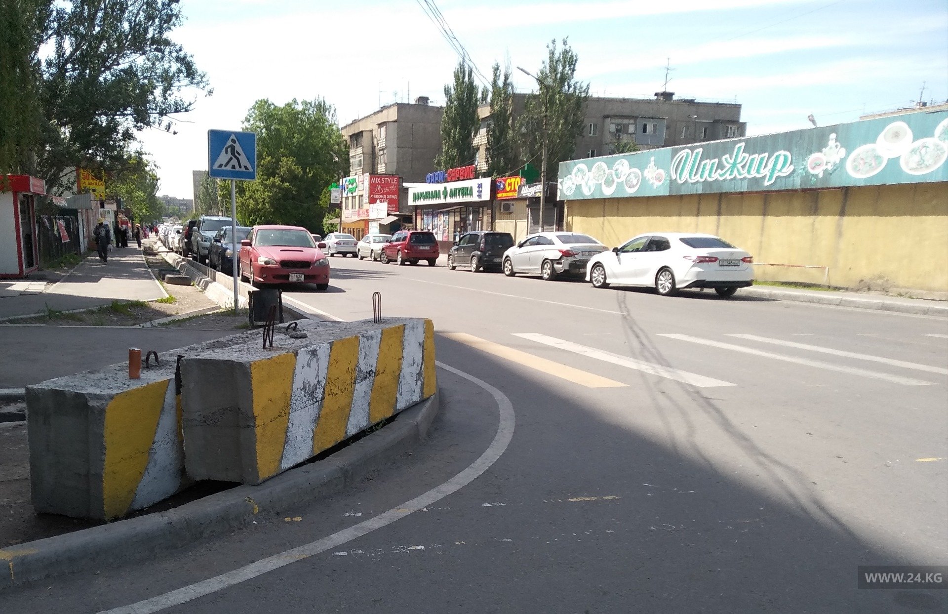 На территории Бишкека все блокпосты убрали, на некоторых перекрестках бетонные блоки пока отодвинули к обочинам.