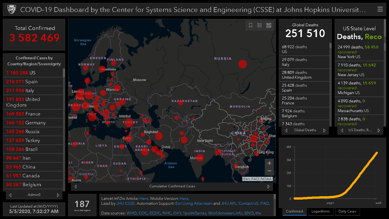 На сегодня число людей, которые умерли после заражения коронавирусом, составляет 251 тысячу 510 человек. Об этом свидетельствуют данные онлайн-карты, разработанной учеными.