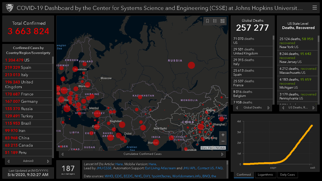 На сегодня число людей, которые умерли после заражения коронавирусом, составляет 257 тысяч 277 человек. Об этом свидетельствуют данные онлайн-карты, разработанной учеными.
