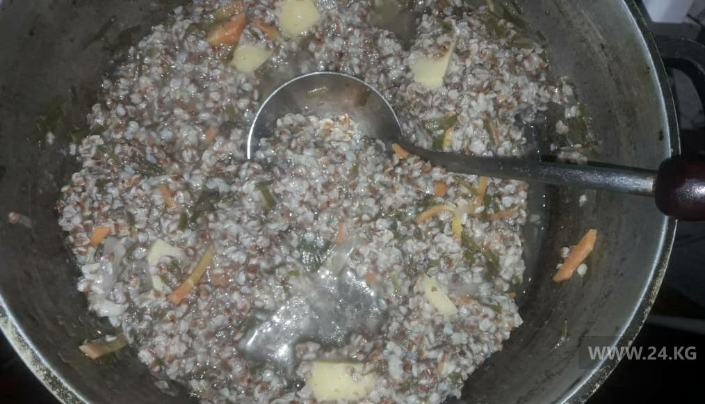У Зарины Исаевой (имена всех героев репортажа изменены по их просьбам. — Прим. 24-kg.com) сегодня на ужин гречневый суп. В семье шесть человек, поэтому казан супа закончится сразу. Растянуть на несколько дней никак не получится. Раньше на ужин семья покупала мясо, овощи, приправы. Сейчас пояса затянуты — гречка от волонтеров, несколько штук картофеля и моркови, взятых в долг в соседнем магазине. Мясо — непозволительная роскошь.