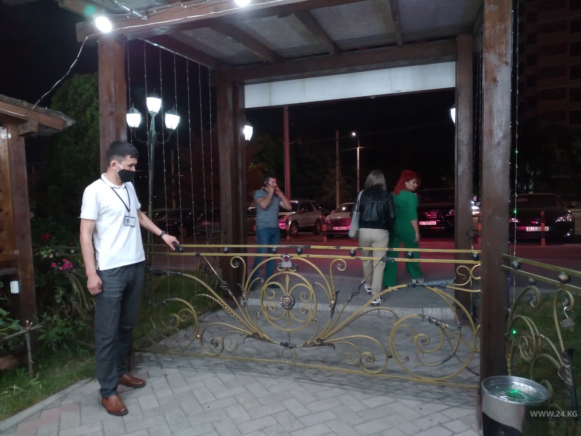 Далее комиссия направилась в ресторан «Ходжа Насреддин» на Южной магистрали. Аналогичная ситуация и здесь: на входе не установлен санитайзер, а температуру никто не проверяет. Количество гостей заведения в разы превышает норму. Вместо положенных 50 посетителей в этот вечер собралось больше ста человек. В ресторане функционируют все залы и летняя зона. Представитель заведения заявила, что не знала об ограничениях в 50 человек по всей территории объекта.Специалисты составили протокол, выписали штраф 16 тысяч сомов и дали час на то, чтобы администрация устранила нарушения и попросила своих посетителей освободить ресторан.