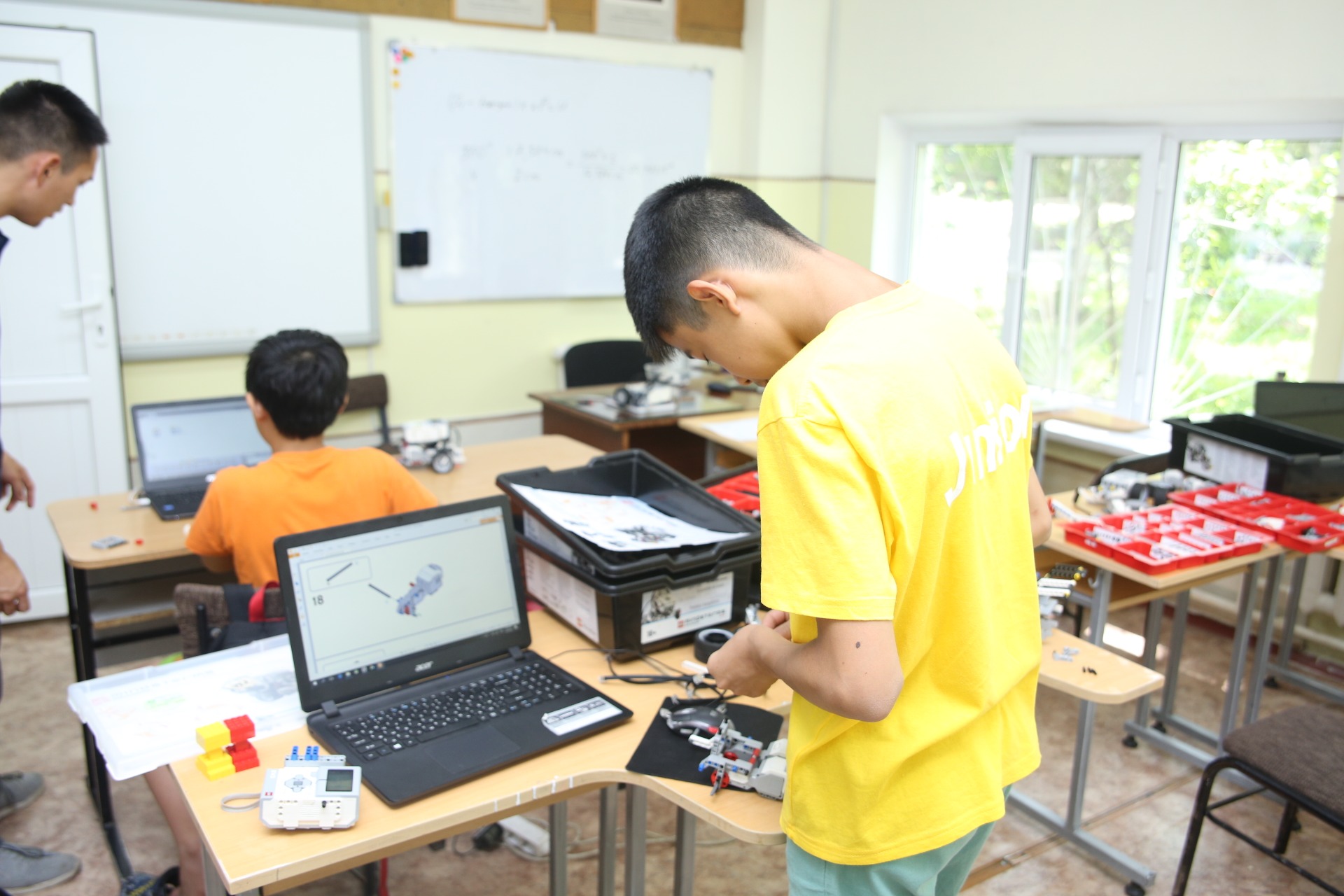 График работы: предлагается два варианта — с 9.00 до 13.00 и с 9.00 до 18.00. Условия: для детей в возрасте 6-11 лет. Тема летней школы «Мировой океан». С помощью наборов LEGO по робототехнике ученики будут создавать гидроэлектростанции, батискафы и океанских жителей, чтобы наглядно увидеть, как устроен Мировой океан.
