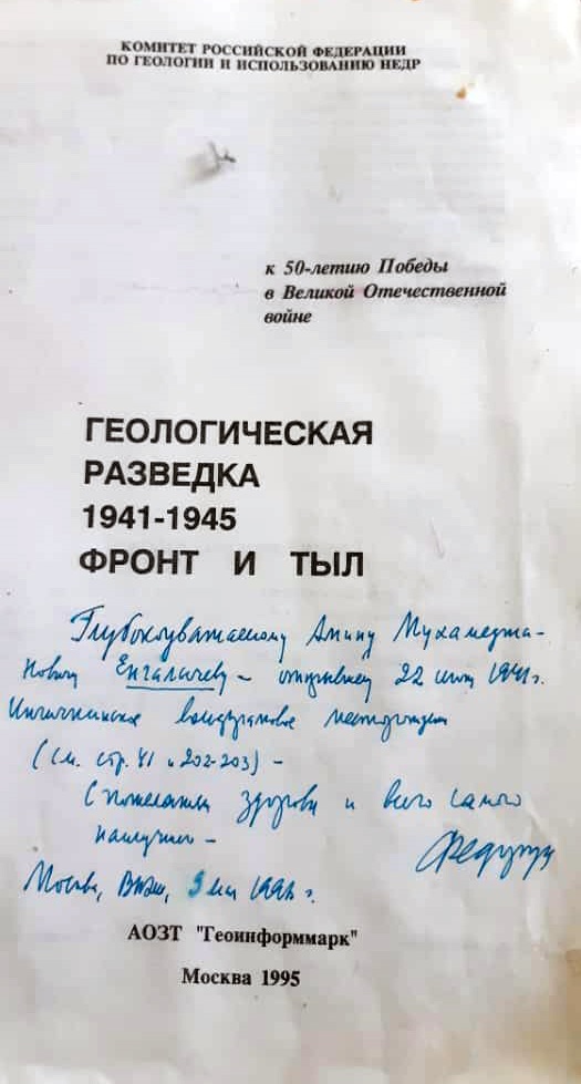 Его воспоминания вошли в книгу «Геологическая разведка 1941–1945 годов. Фронт и тыл», которая была издана в Москве к 50-летию Победы в Великой Отечественной войне.