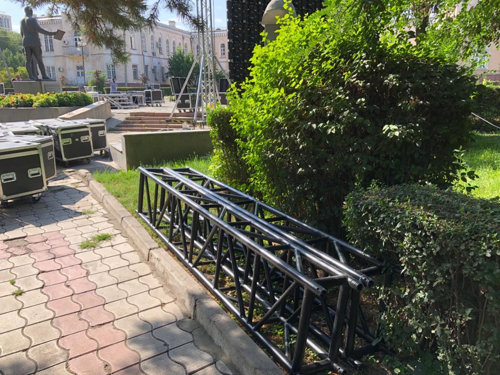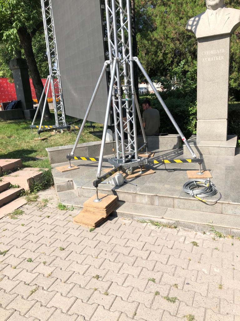 По ее данным, организатор мероприятия в центре города — компания «Сан Маркетинг» установила LED-экраны прямо на газонной части, а некоторая аппаратура стояла прямо на основании памятника.