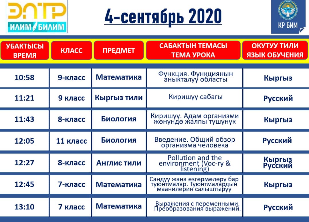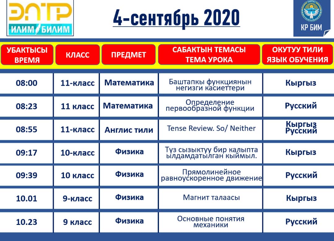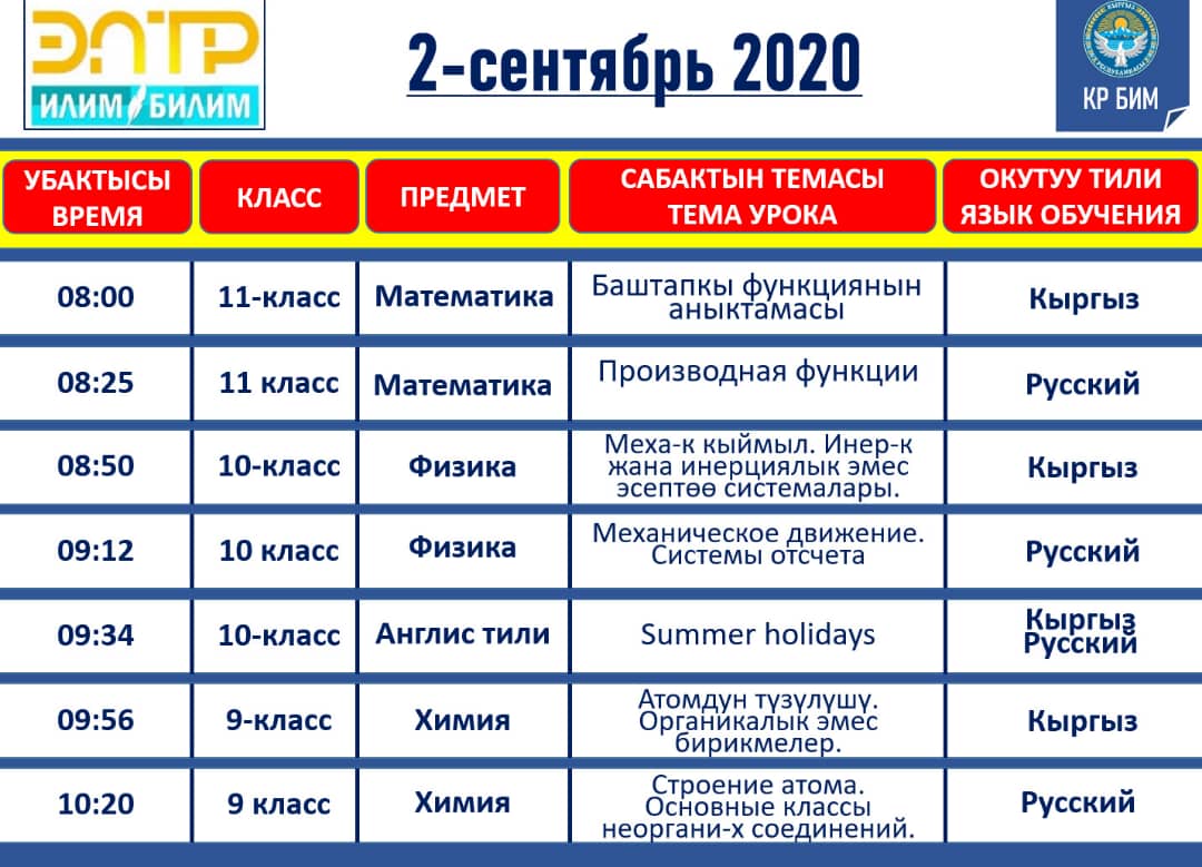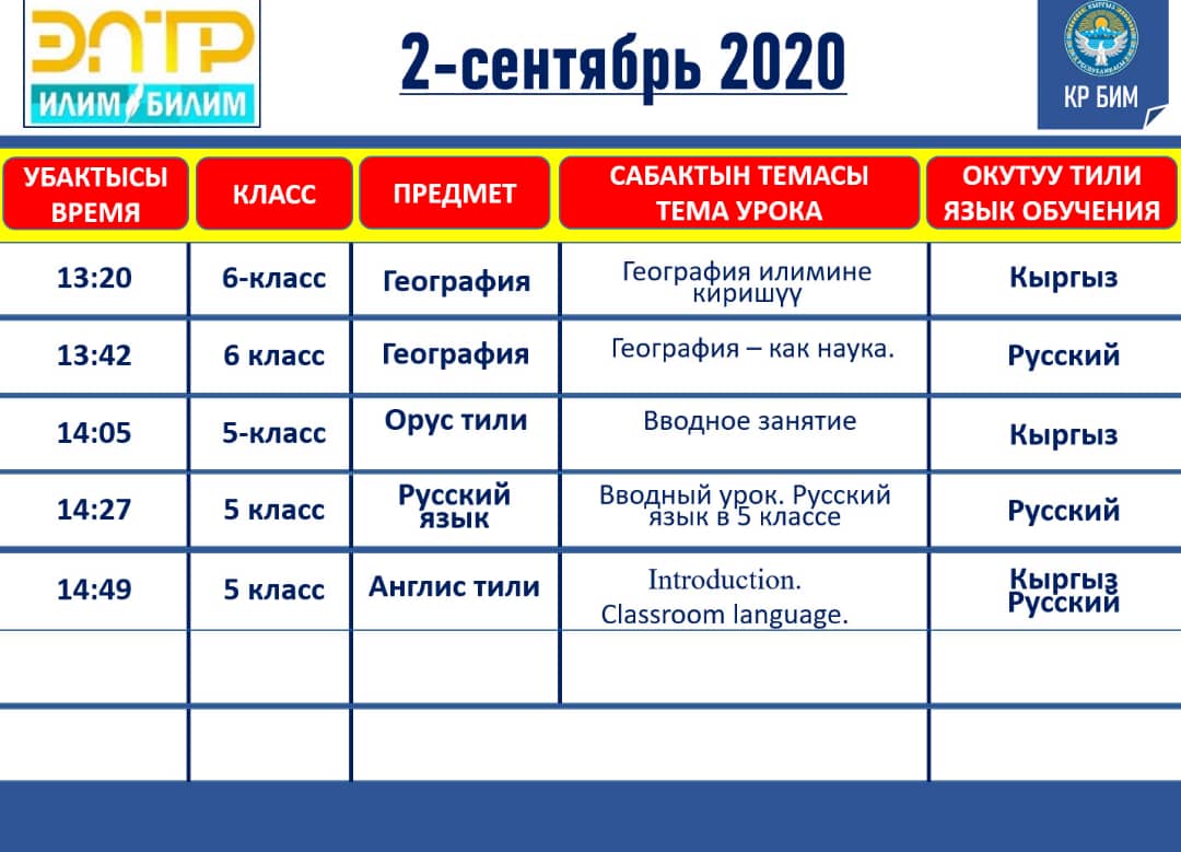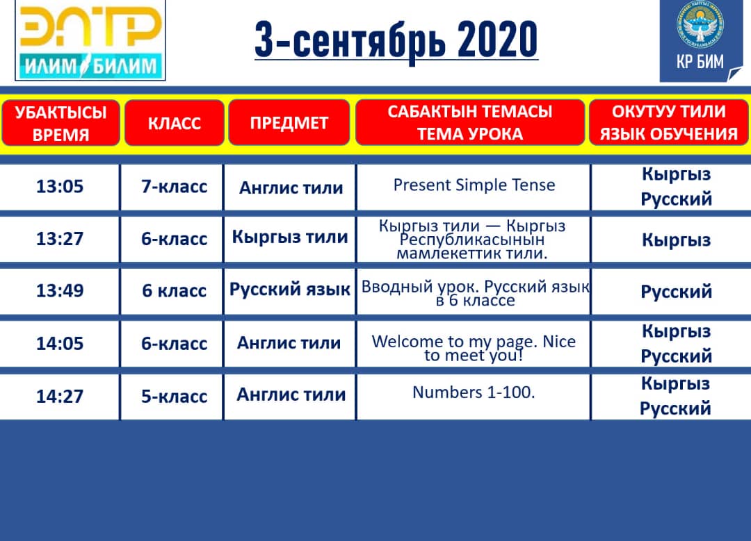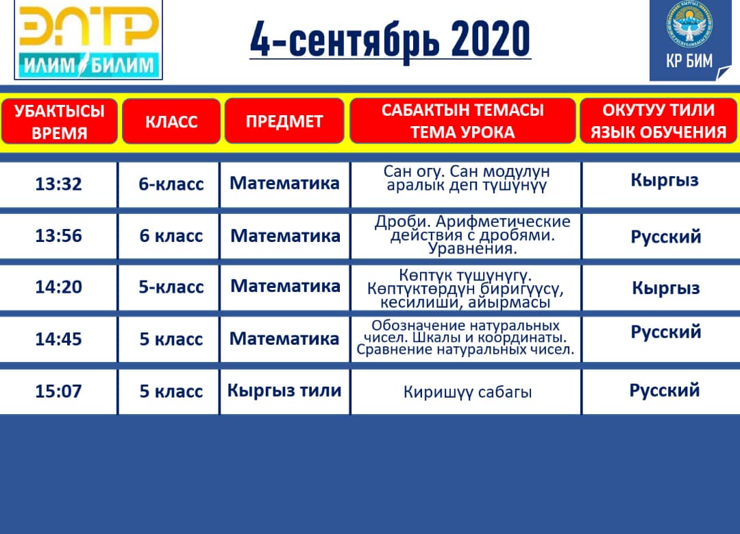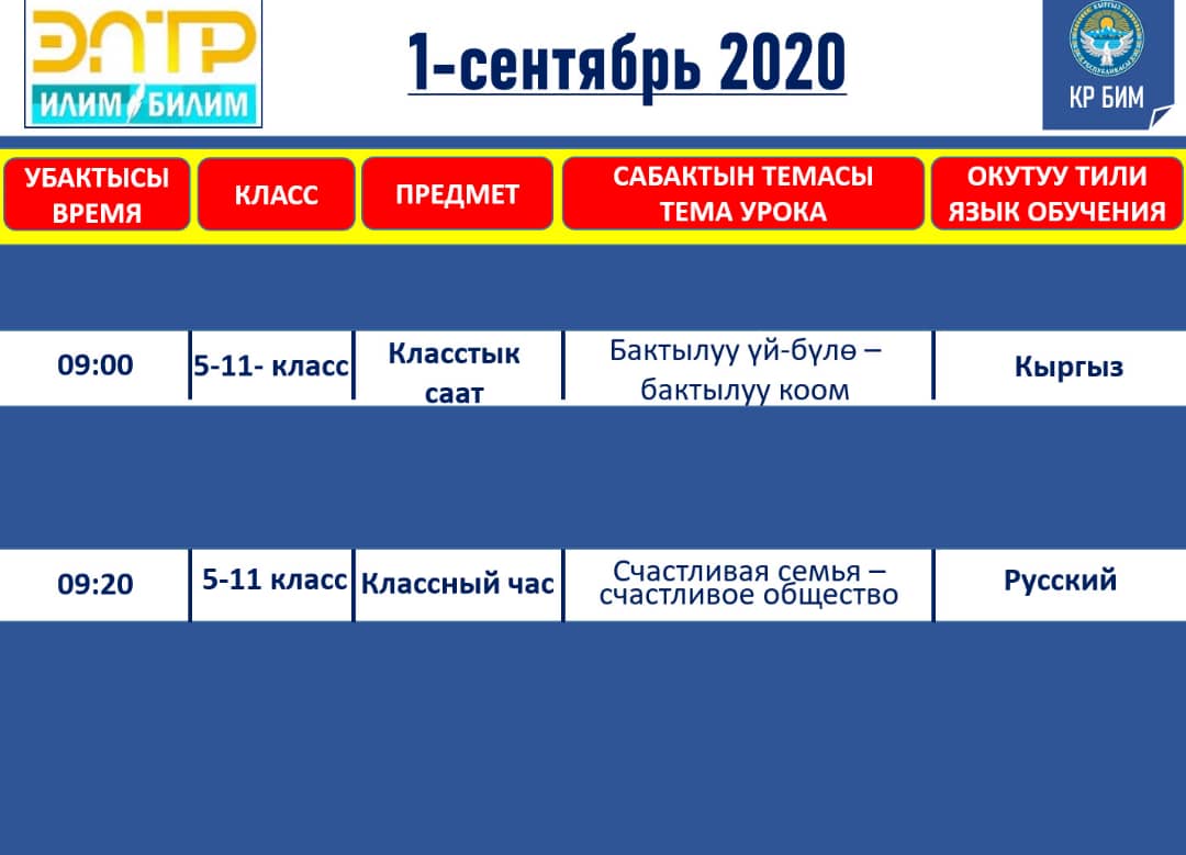 Министерство образования и науки подготовило телеуроки. Они будут транслироваться на телеканалах КТРК «Баластан» и ЭлТР «Илим, билим», а также будут доступны на платформе МОиН.