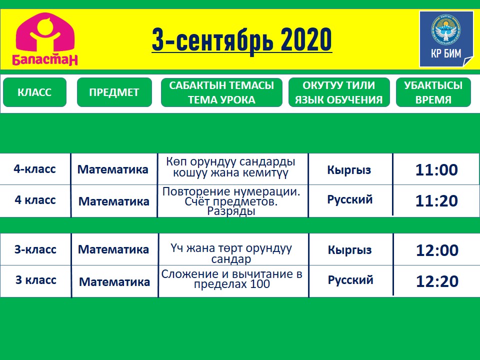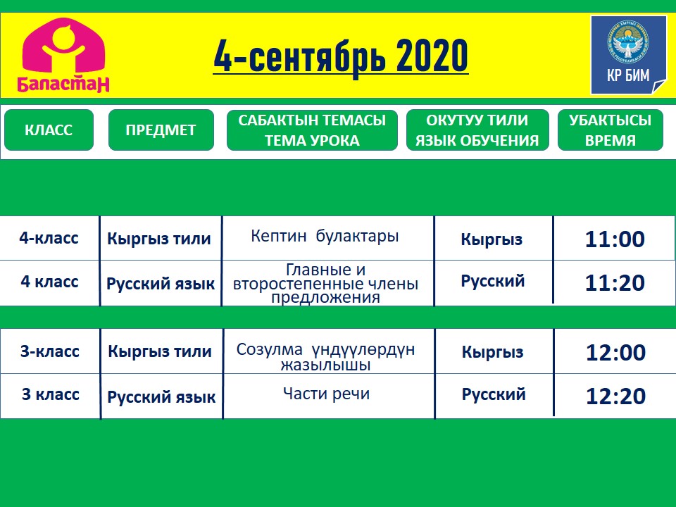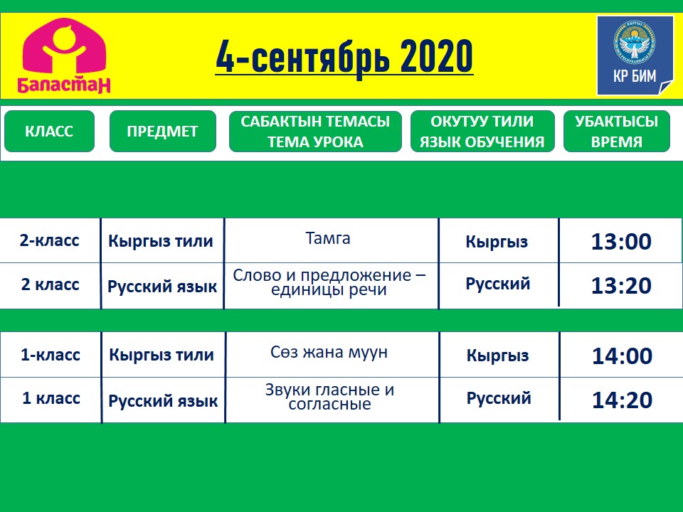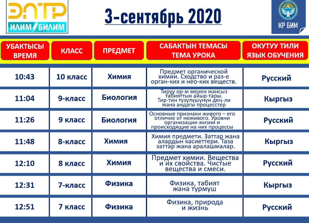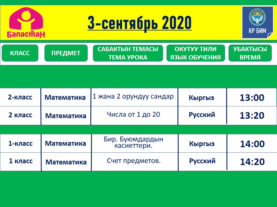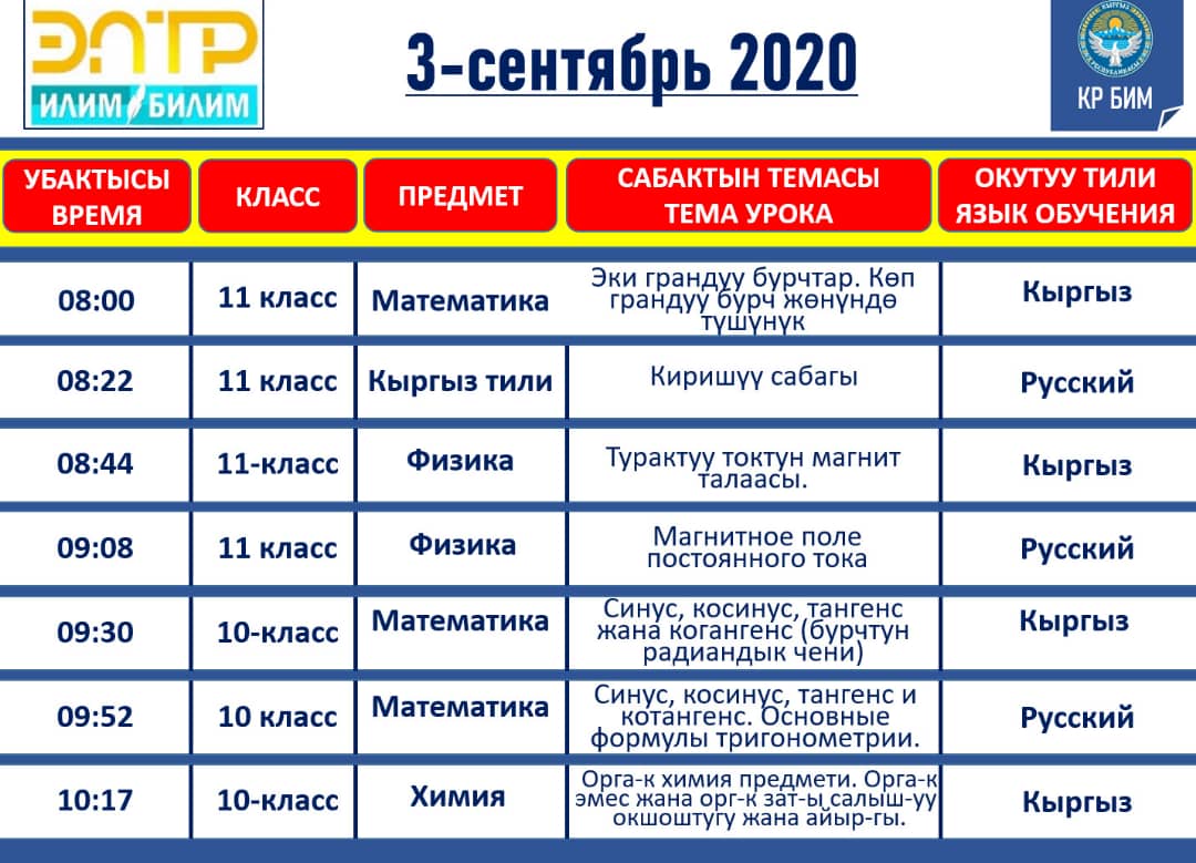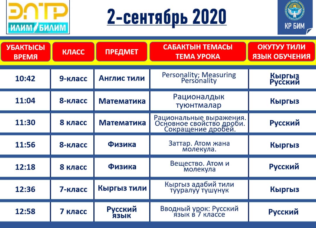 Министерство образования и науки подготовило телеуроки. Они будут транслироваться на телеканалах КТРК «Баластан» и ЭлТР «Илим, билим», а также будут доступны на платформе МОиН.