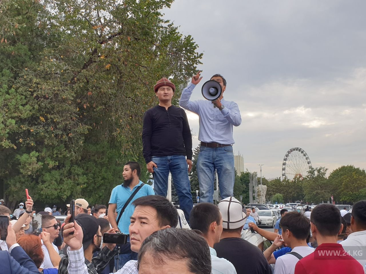 Кандидат в депутаты Тилек Токтогазиев подошел к сторонникам и стал расспрашивать их, зачем они пришли. Представители «Кыргызстана» попросили его уйти, но Токтогазиев отказался.