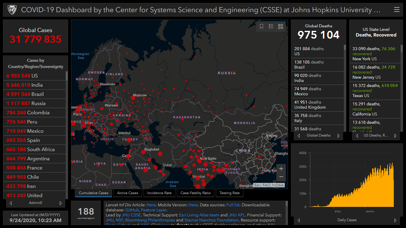 COVID-19. Уже 31,7 миллиона человек в мире заразились и 975 тысяч умерли