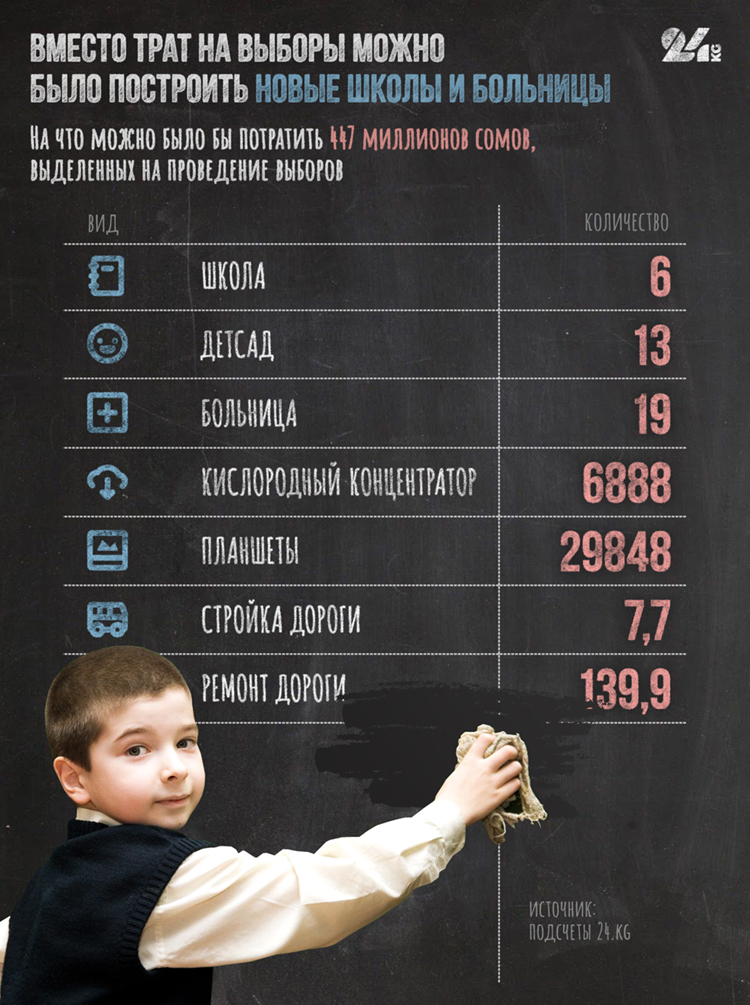 В итоге выборы обойдутся государственной казне в 447 миллионов 726,5 тысячи сомов.