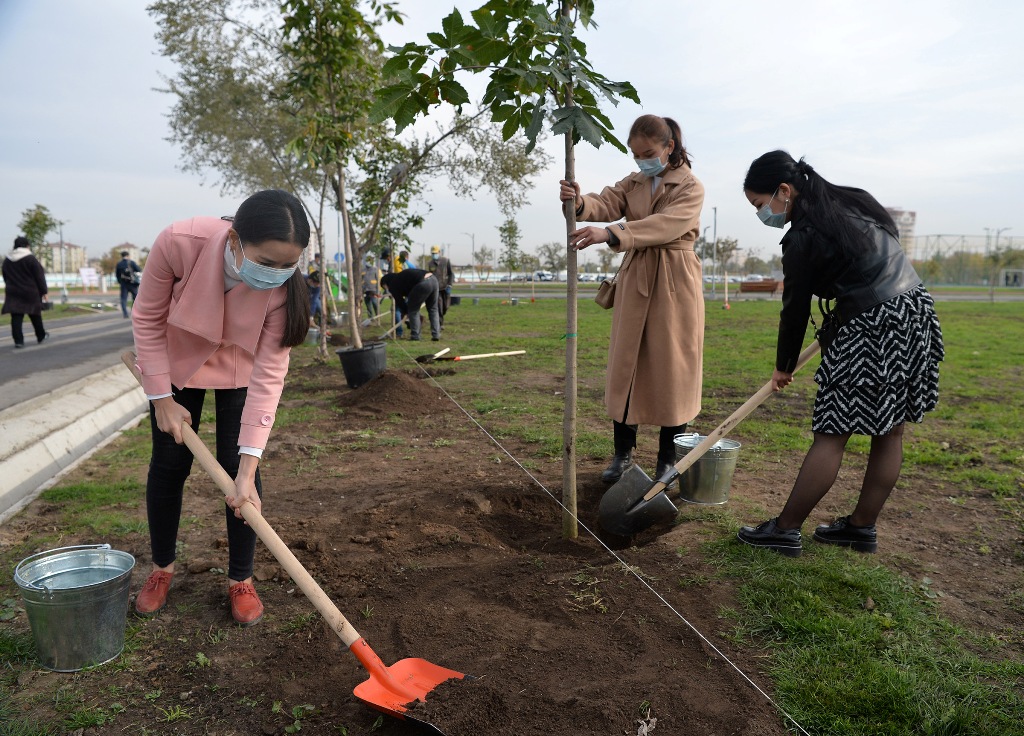 По ее данным, парк сегодня посетил глава государства Сооронбай Жээнбеков, родственники и однокурсники Адинай Мырзабековой, а также медицинские работники, сотрудники правоохранительных органов и другие активные участниками борьбы с пандемией. Они почтили память кыргызстанцев, ставших жертвами COVID-19, посадили деревья.