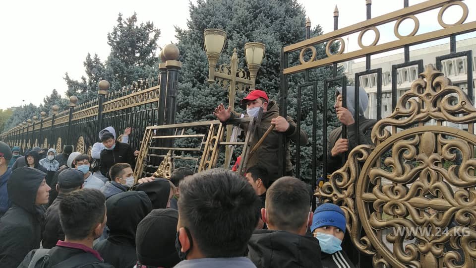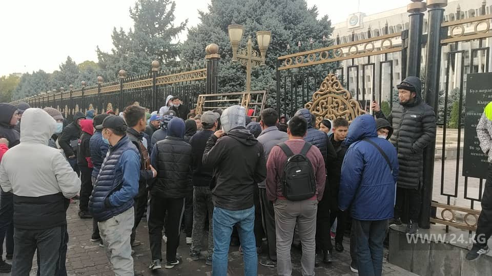 В Бишкеке митингующие не могут определиться, сносить им забор вокруг «Белого дома» или нет.