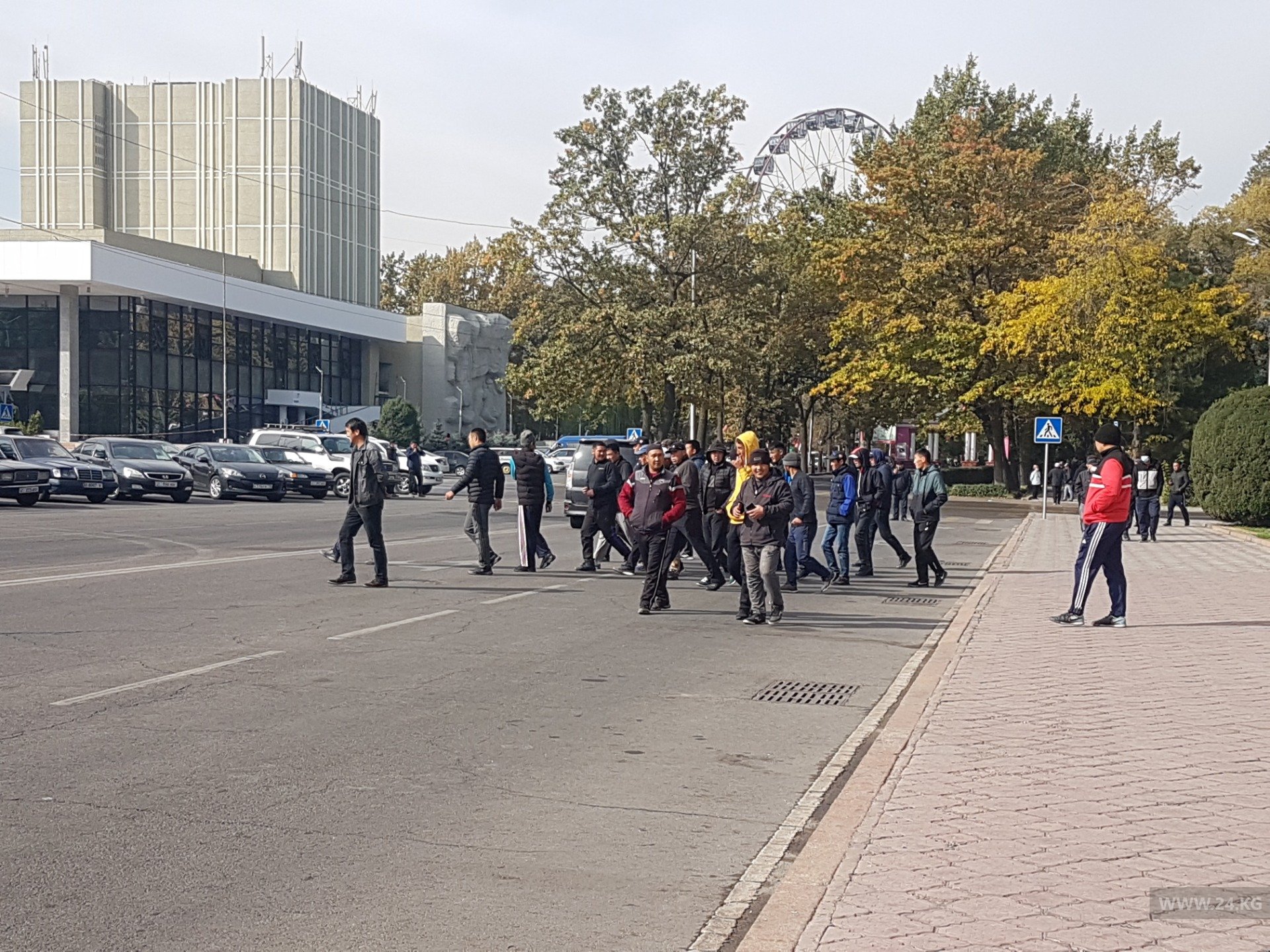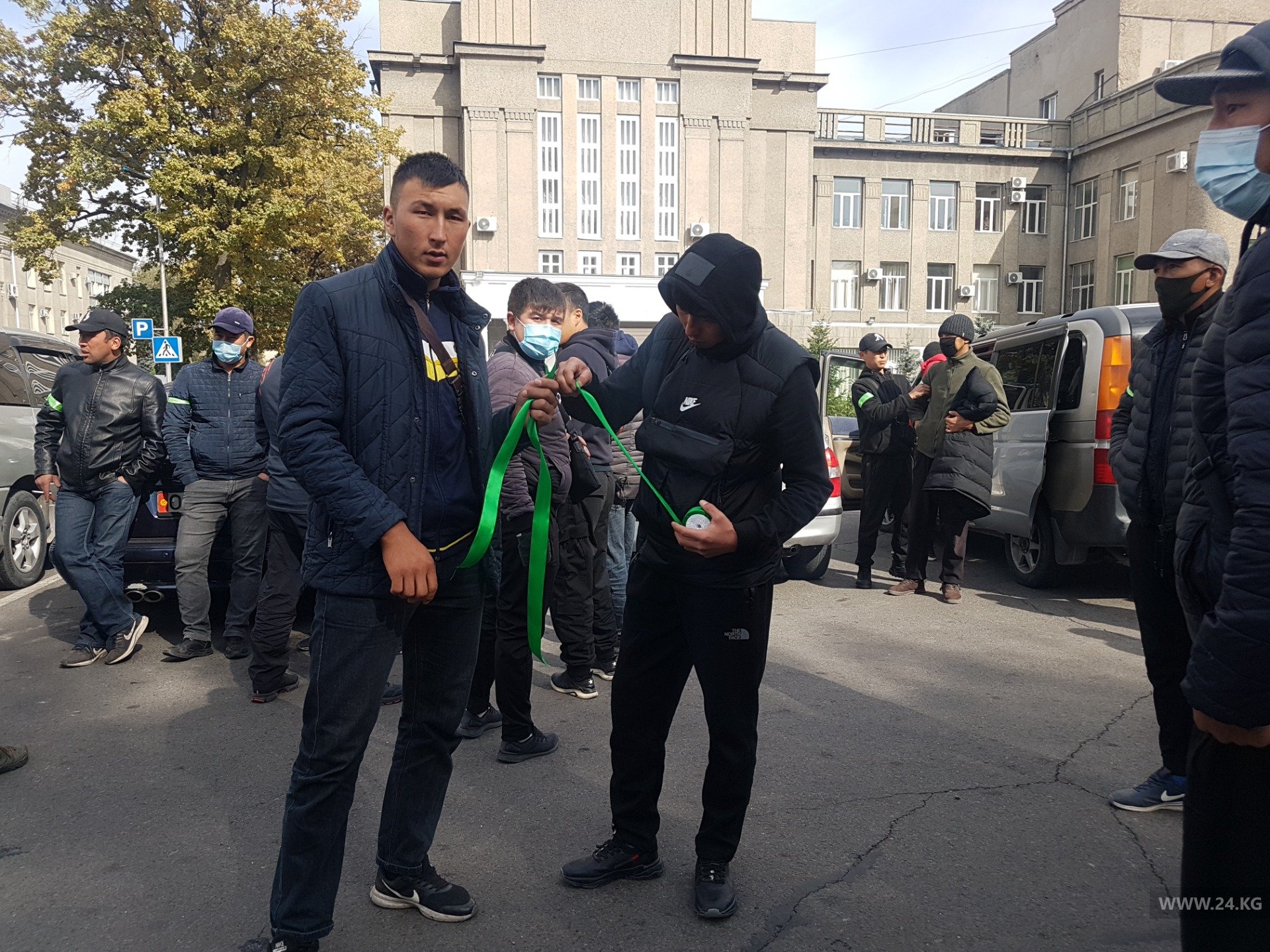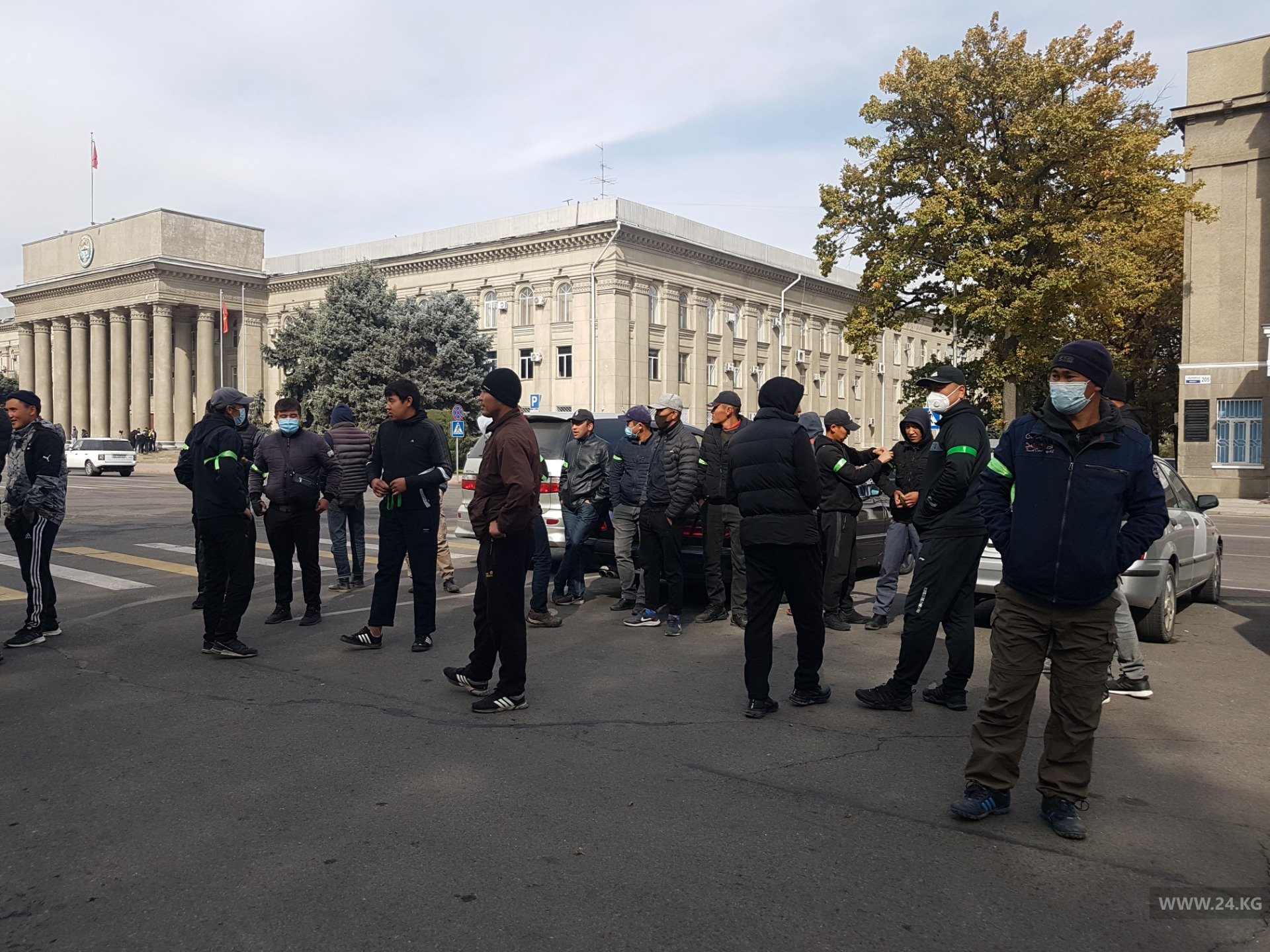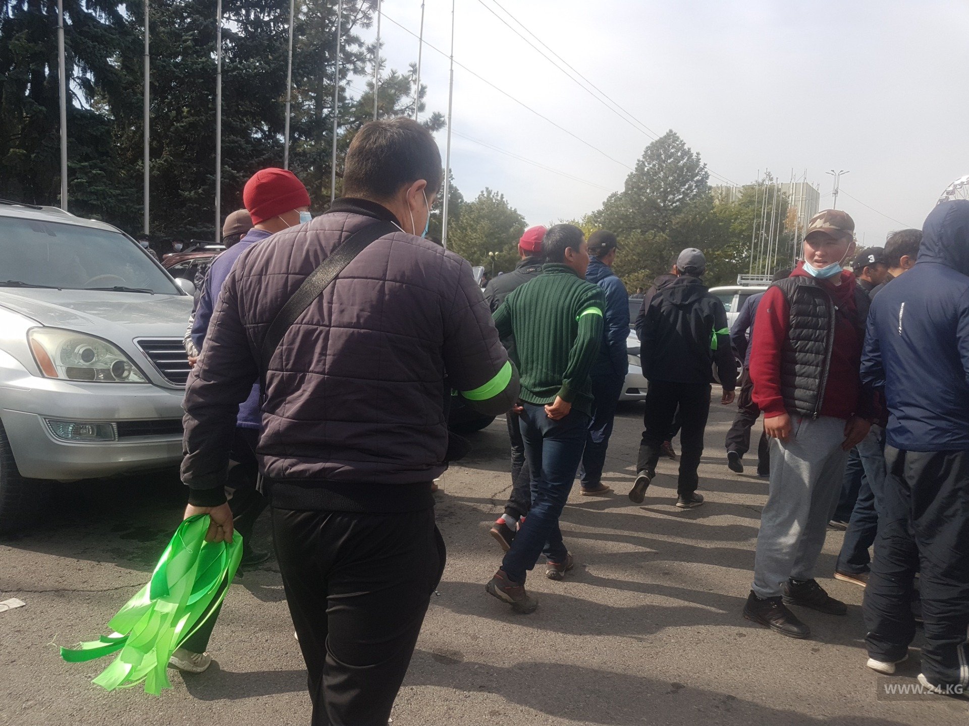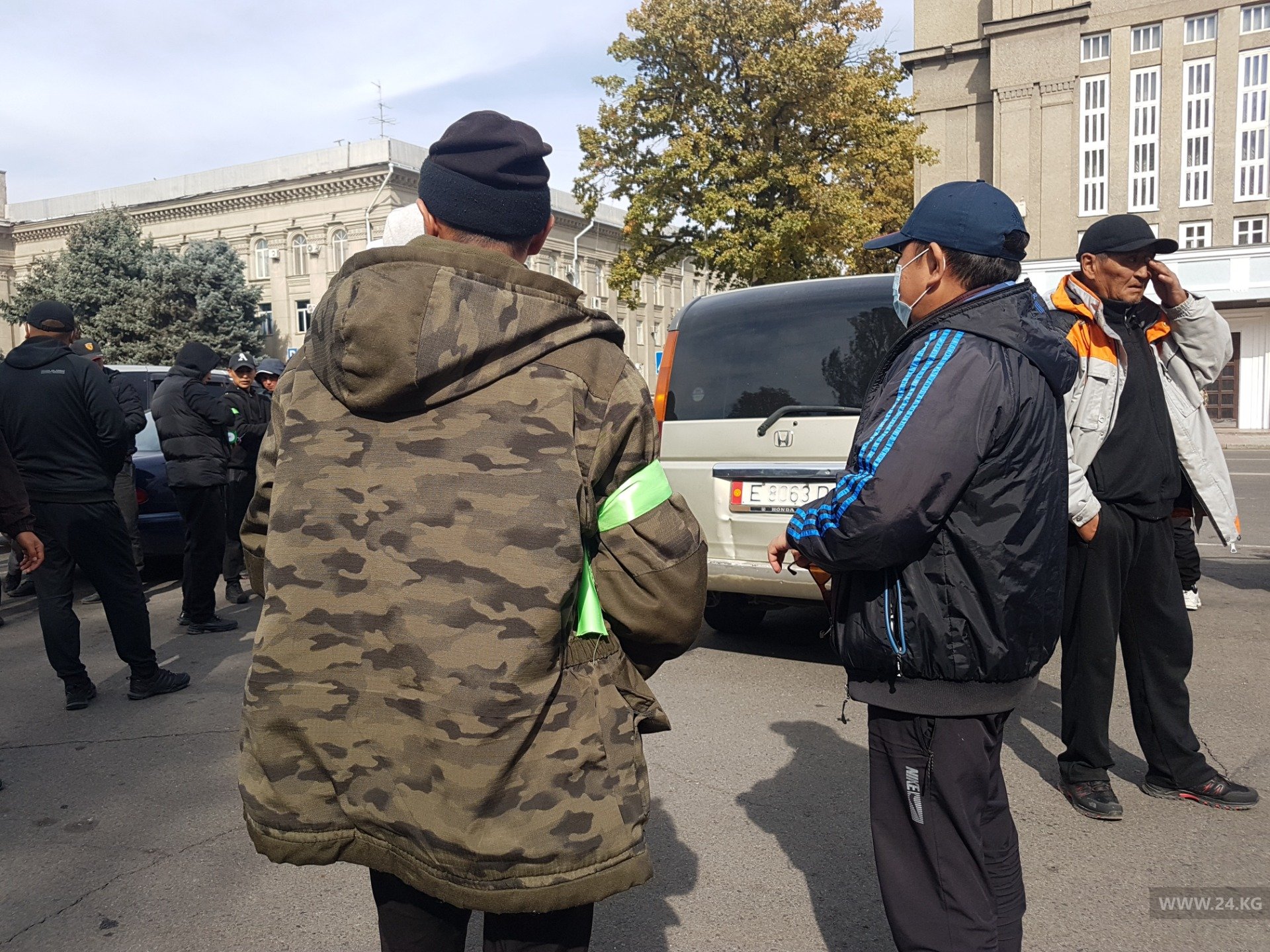 К Дому правительства подъехала группа мужчин в спортивной одежде. Они рассказали журналисту 24-kg.com, что приехали с Иссык-Куля, являются народными дружинниками.