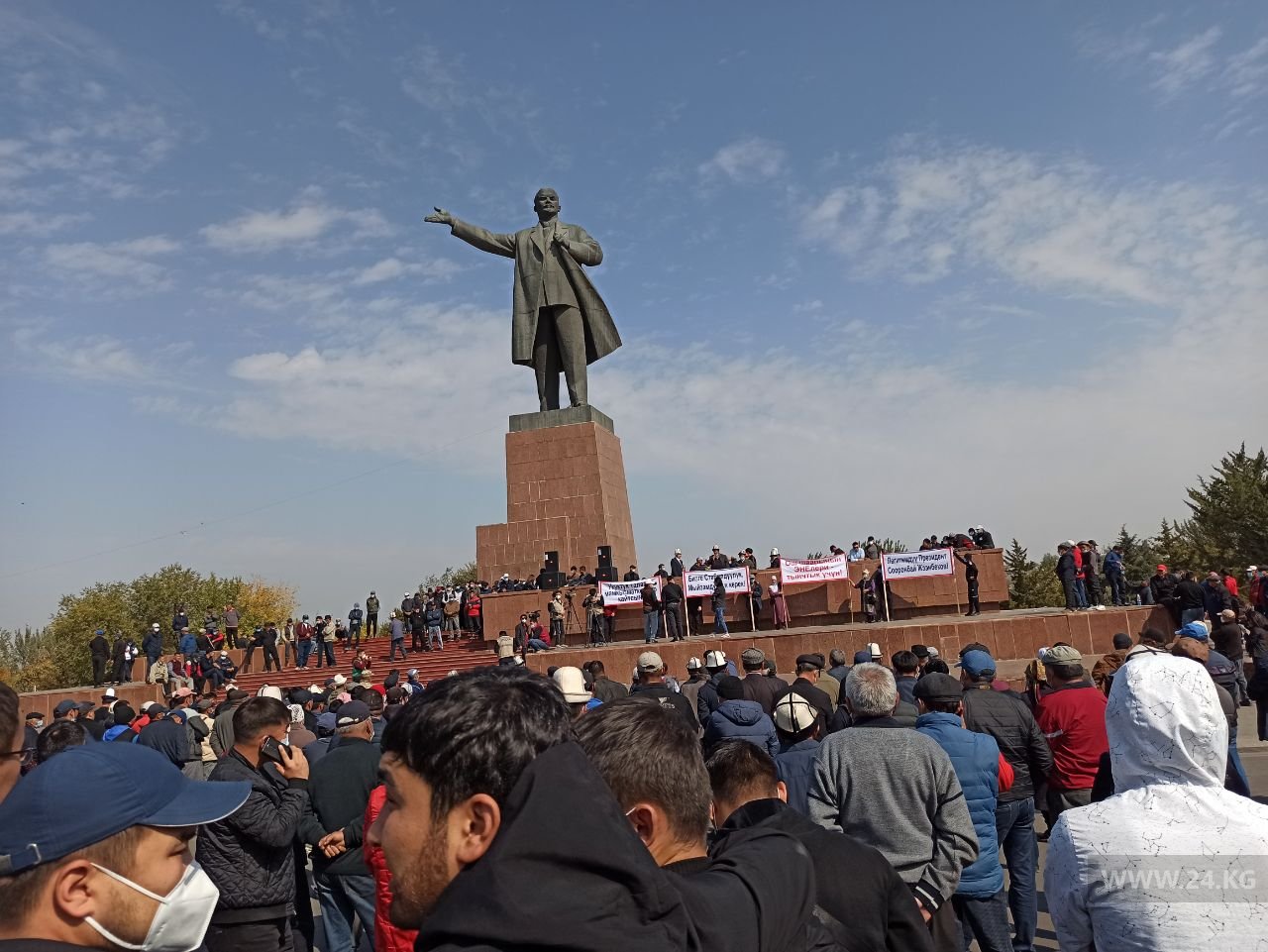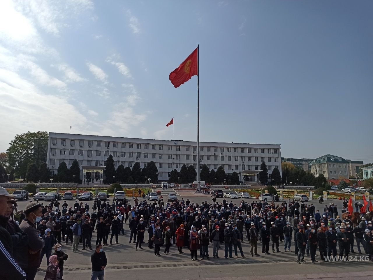Уточняется, что участники акции протеста выступают за соблюдение законности в стране. Они также высказывают лозунги в поддержку Сооронбая Жээнбекова.