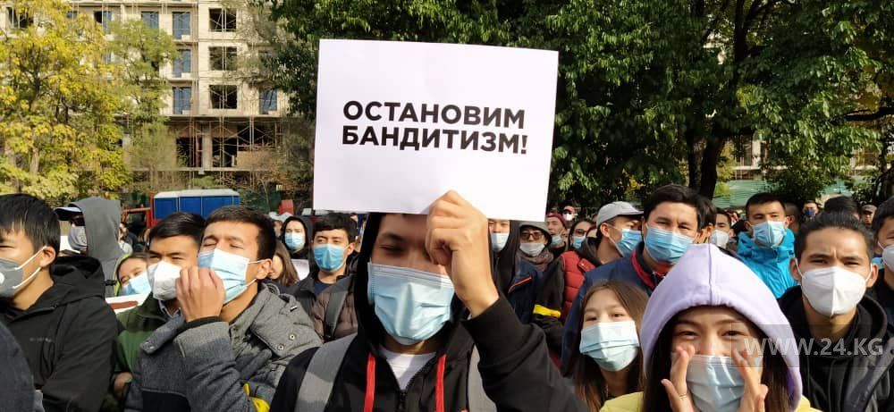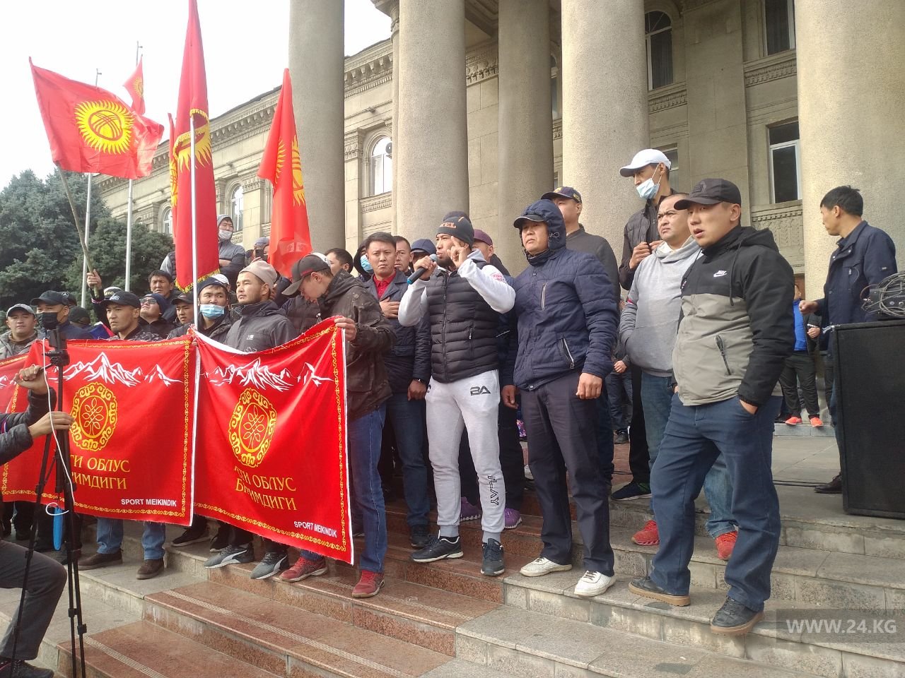 Митингующие скандируют: «Сооронбай кетсин!», «Бабанов!»