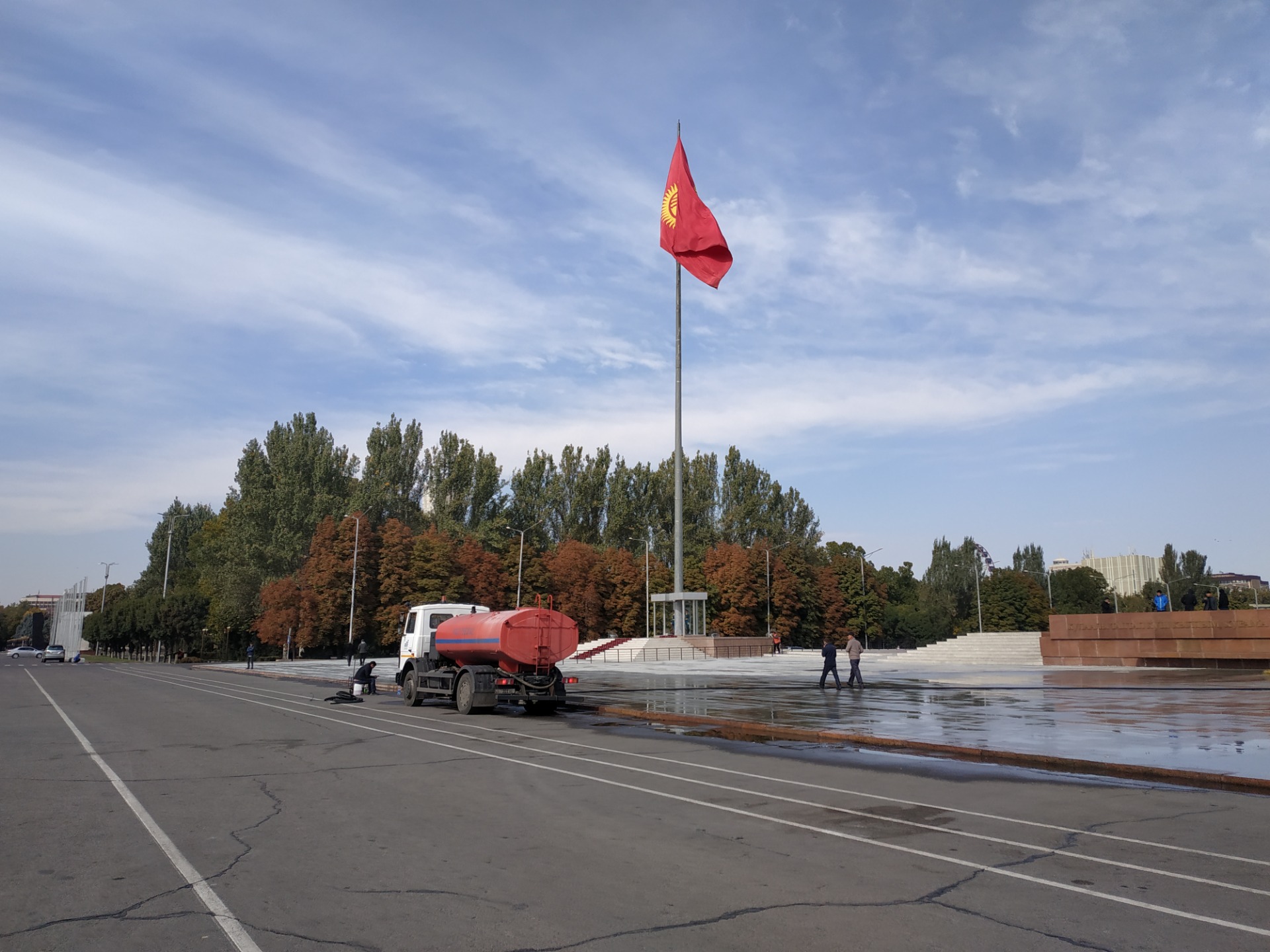 Перед «Белым домов» Азиз Суракматов высказал предложение заменить брусчатку на асфальт. Так, по его мнению, будет и красивее, и смогут ездить велосипедисты. Добавим, что с другой стороны проспекта Чуй в этом году уложили на тротуаре асфальт.