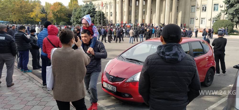 Возле Дома правительства в Бишкеке продолжается митинг в поддержку Садыра Жапарова. Митингующих становится все больше, на Старой площади и в ближайших скверах уже собралось около 5 тысяч человек. Некоторые приходят на акцию с детьми.
