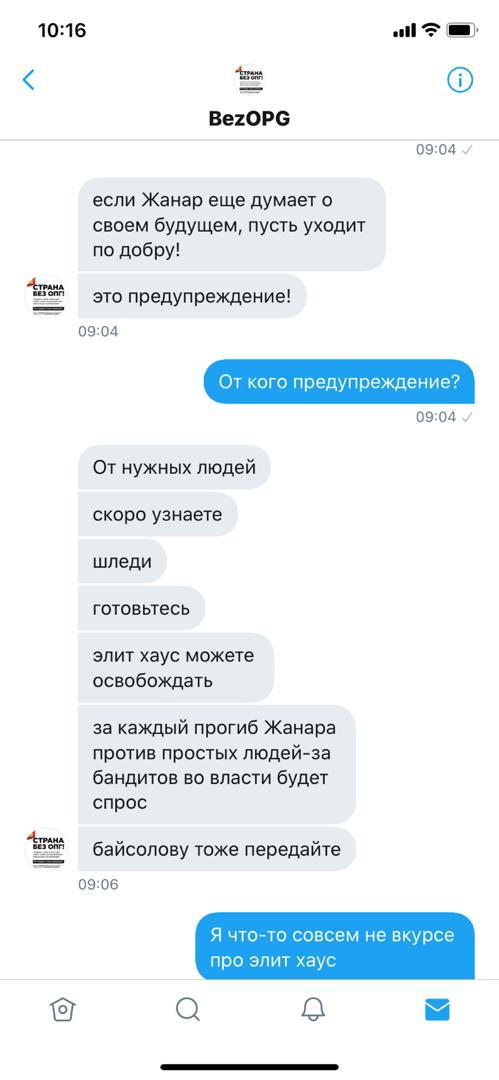 «Моей супруге с неизвестного аккаунта стали писать неизвестные люди. В сообщениях указывалось, что кто-то знает, где я живу, сколько у меня детей и в какую школу они ходят. Я намерен обратиться в правоохранительные органы», — сказал Жанар Акаев.