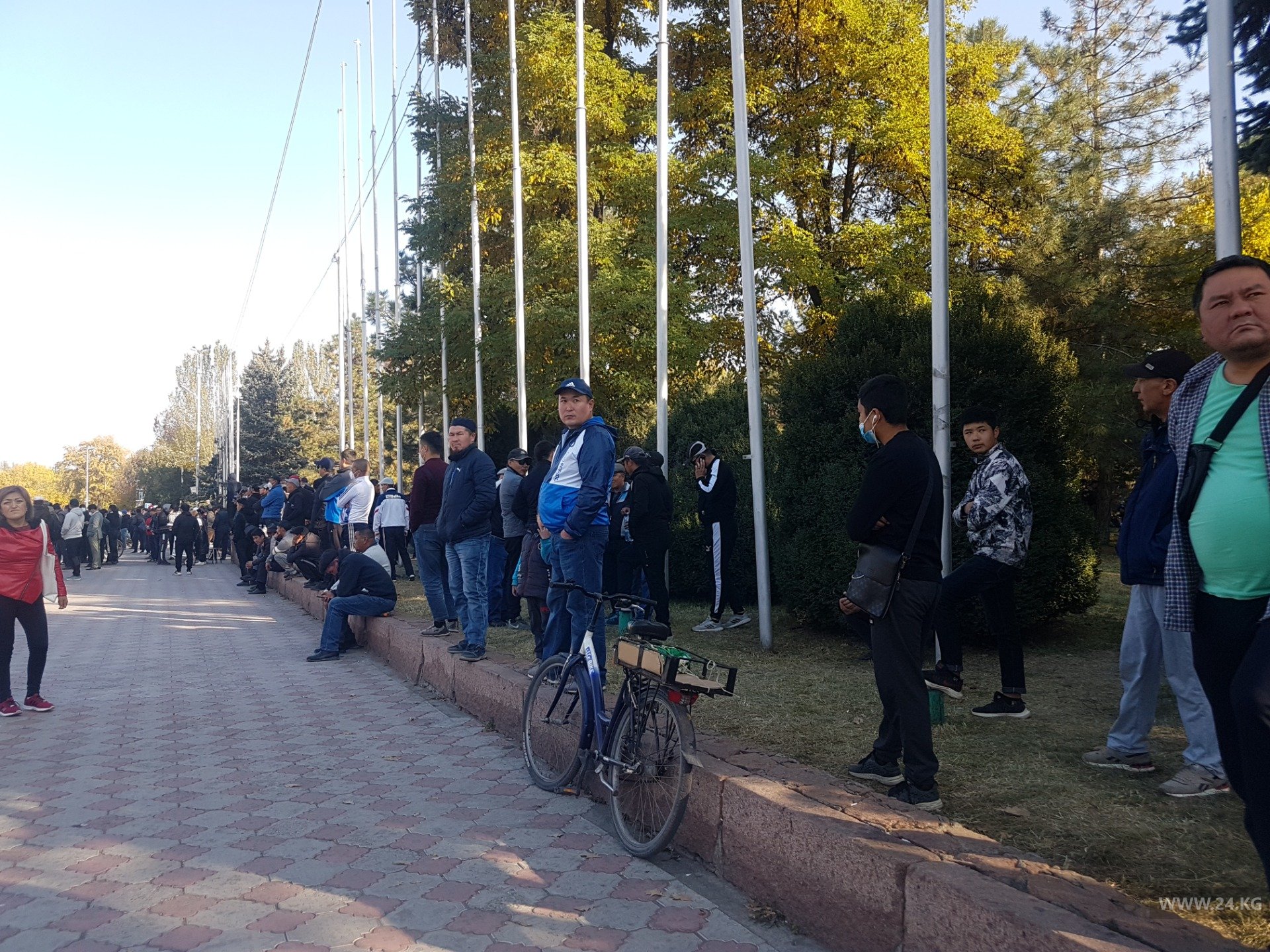 Теперь же участники акции протеста выступают за отставку президента Сооронбая Жээнбекова. И ждут, когда Садыр Жапаров выступит перед собравшимися.