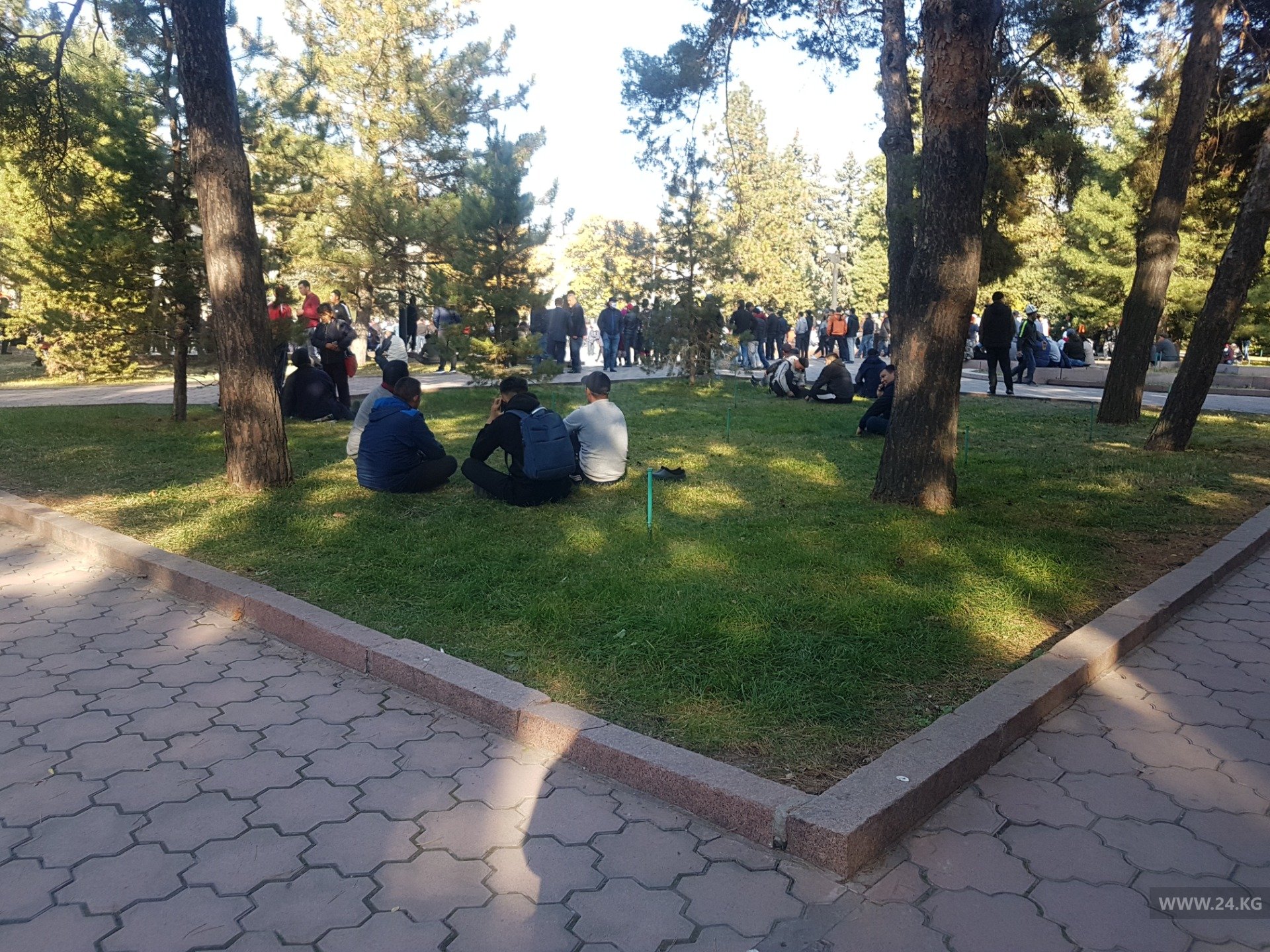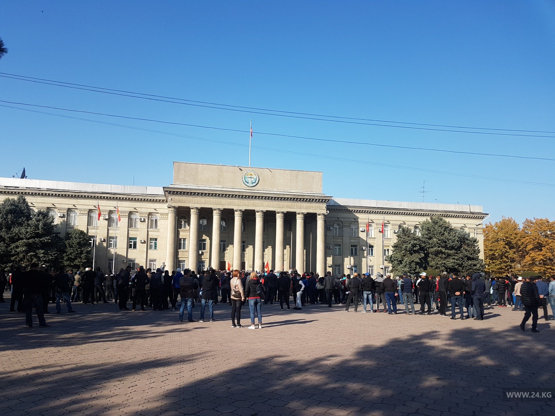 На Старой площади у Дома правительства снова митингуют сторонники Садыра Жапарова.
