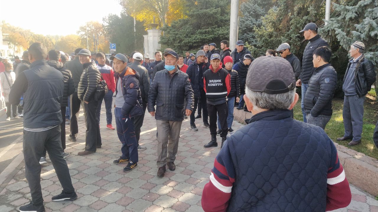 В Бишкеке у Дома правительства сторонники Садыра Жапарова вновь собираются на митинг. Подъезжают микроавтобусы и легковые машины, на которых людей организованно привозят к Старой площади. Представителей правопорядка, несмотря на то что в Бишкеке введен ограничивающий массовые собрания режим ЧП, нет.