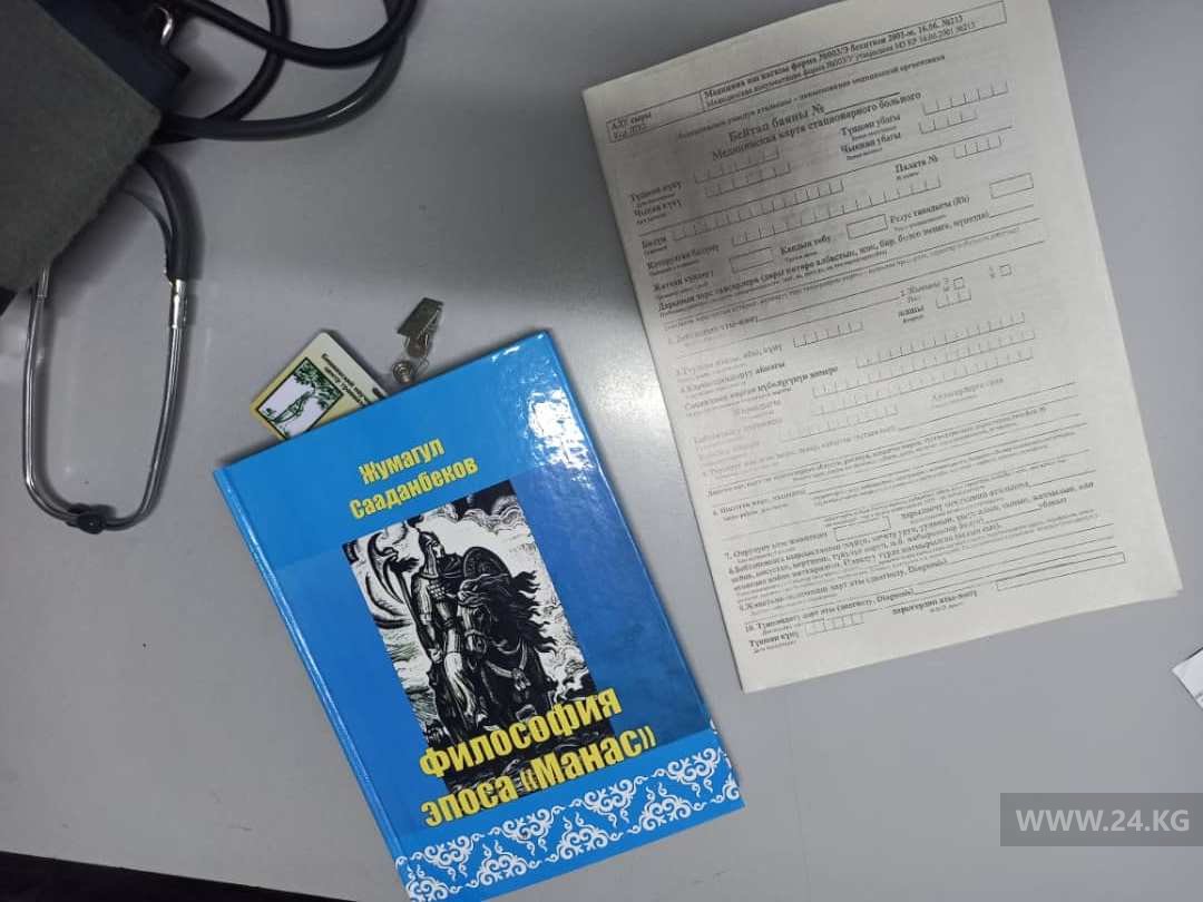 Врачей Бишкекского научно-исследовательского центра травматологии и ортопедии заставляют покупать книги по философии эпоса «Манас». Об этом 24-kg.com сообщил один из сотрудников центра. В качестве подтверждения он прислал фотографию книги за авторством Жумагула Сааданбекова.