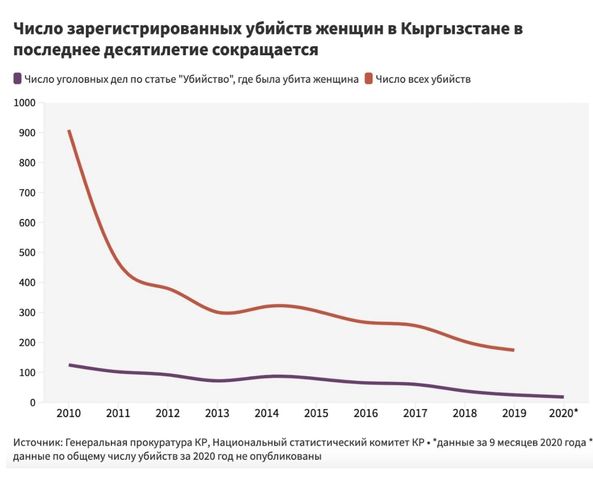 За последние 10 лет в республике сократилось количество зарегистрированных случаев убийства женщин. Такие данные приведены в исследовании «Фемицид. Кто и как убивает женщин в Кыргызстане?»