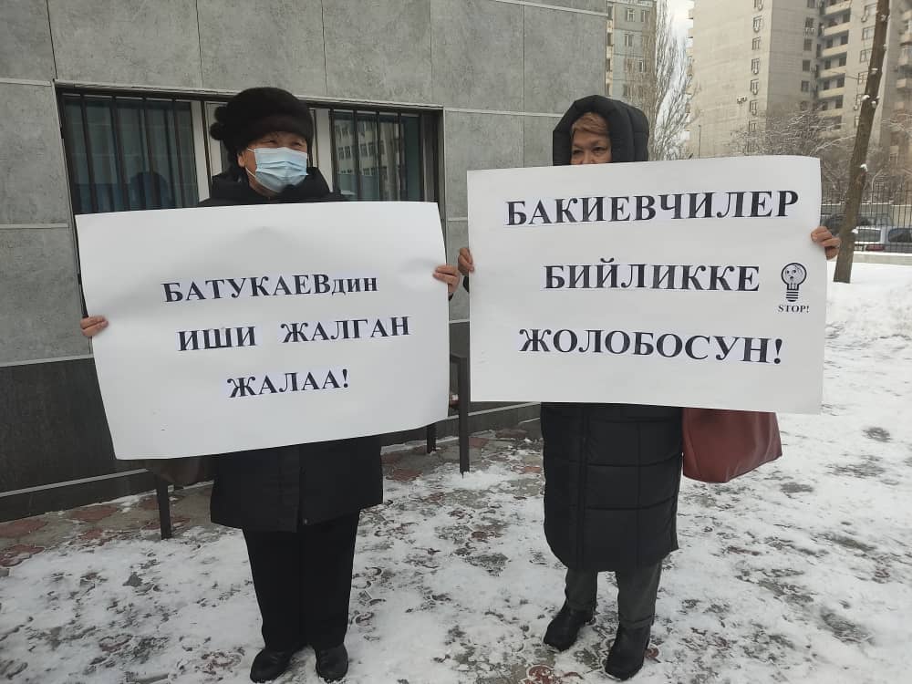 Сторонники бывшего президента Алмазбека Атамбаева устроили митинг в здании суда. Около 30 человек требуют его освобождения. На плакатах также написано требование об аресте экс-главы государства Сооронбая Жээнбекова.