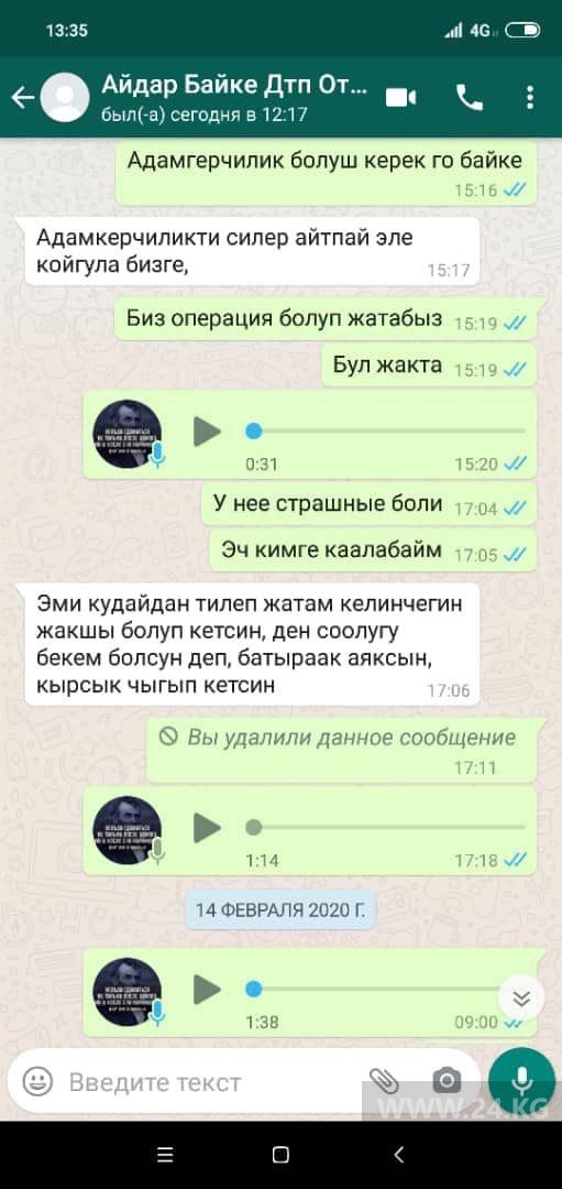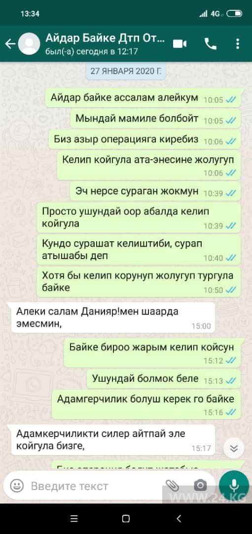«Виновник аварии и его родственники не вышли на связь с нами, не захотели по-человечески решить и возместить ущерб. Они решили обжаловать решение суда под предлогом, что не согласны с ущербом. Мы надеялись на их человечность и хотели с пониманием отнестись к произошедшему. Но после операции уже прошел год, они даже не позвонили и не спросили о моем состоянии. Судья Айдарбек Алымкулов принципиально делает все, чтобы не оплатить нам ущерб», – жалуется пострадавшая.