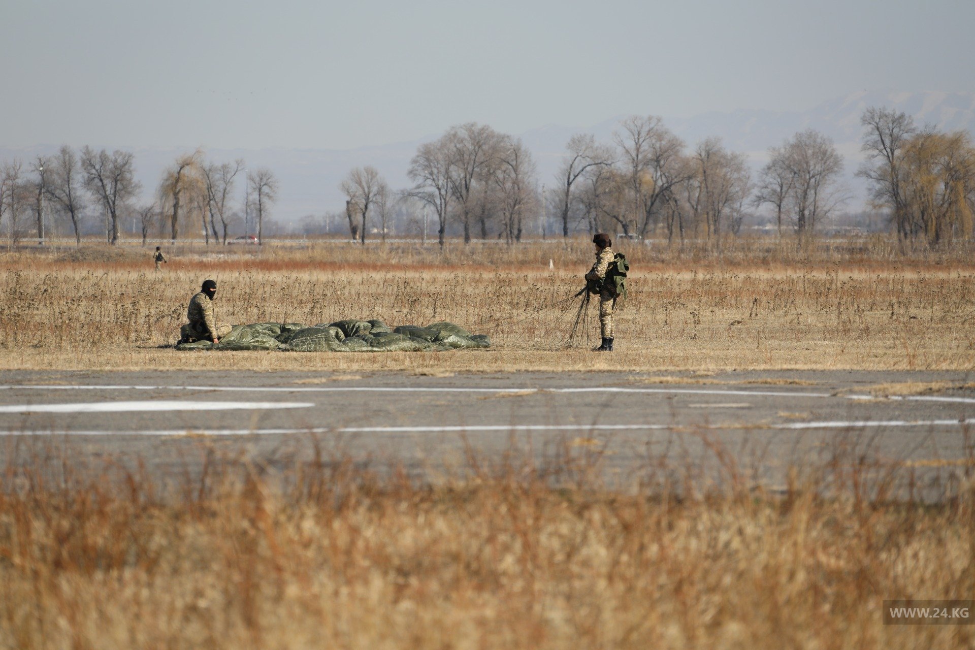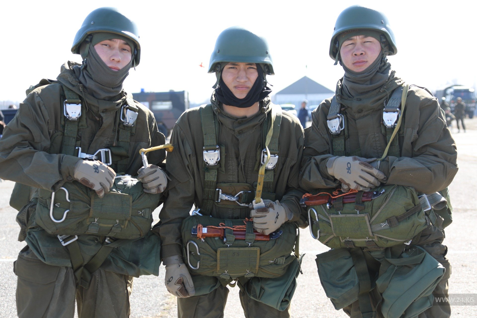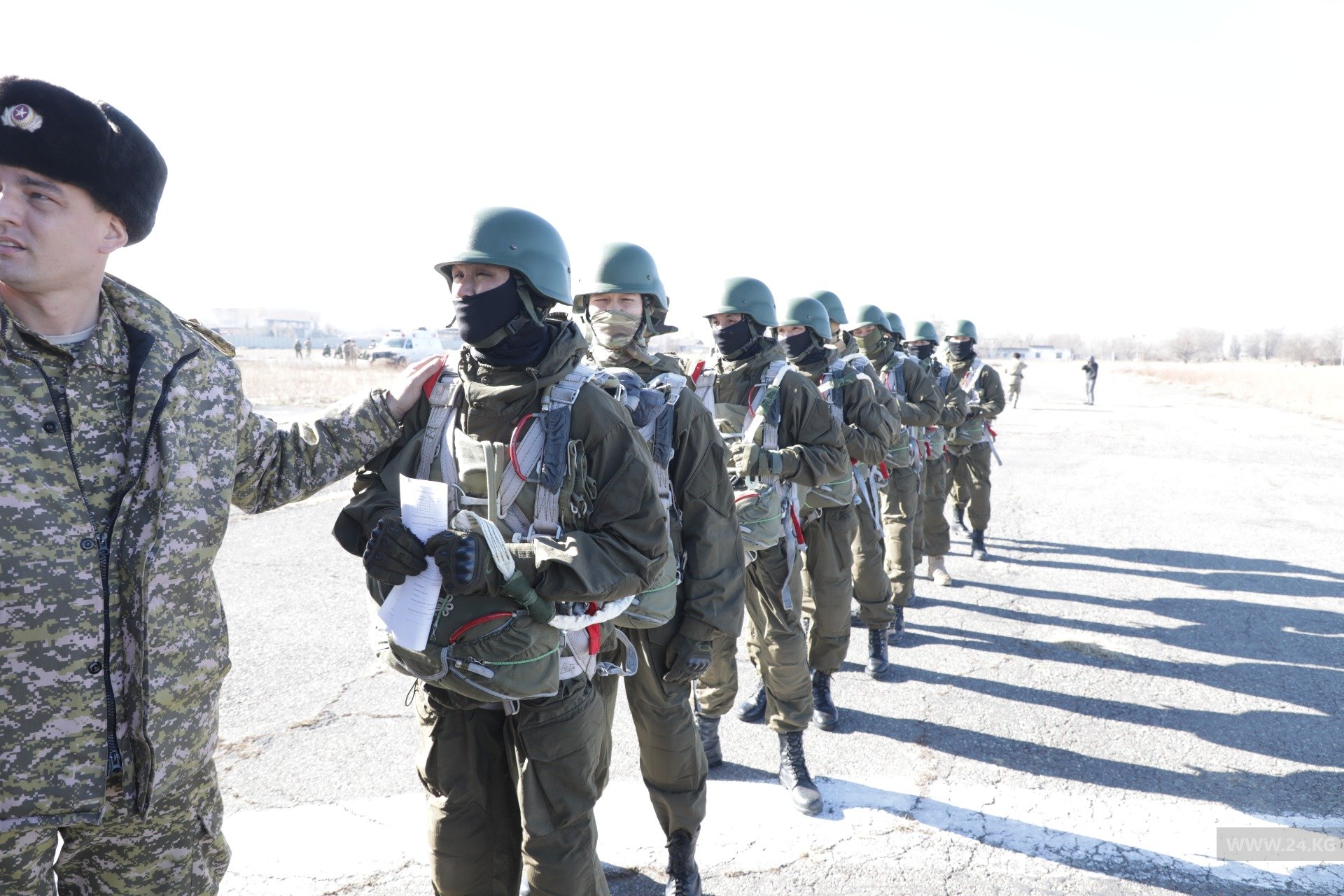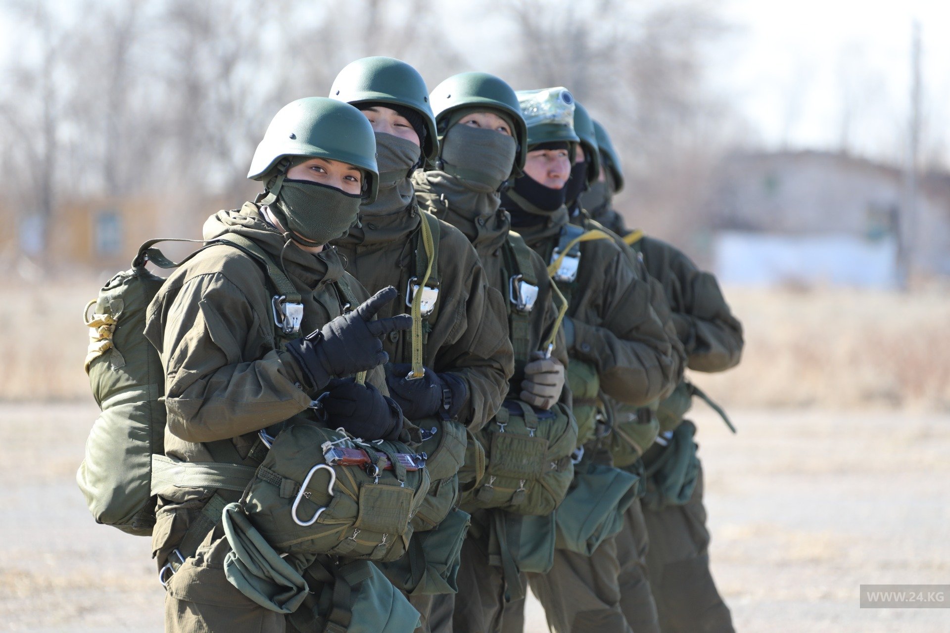 «Теоретическая часть включает в себя наземную отработку прыжков, укладку парашюта, правильное приземление, действие десантника при отказе от основного купола и отработка внештатных ситуаций. Прыжки с парашютом мы планировали с декабря 2020 года. В нашем подразделении каждую неделю идет тренировка», — пояснил Толкунбек Турдуев.