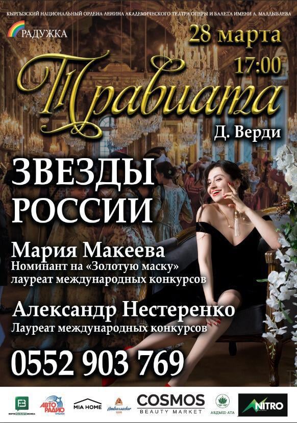 В Кыргызском национальном академическом театре оперы и балета имени Абдыласа Малдыбаева 28 марта покажут «Травиату». Об этом сообщили в театре.