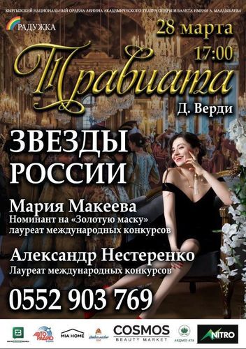 В Бишкеке выступят солисты Московского академического музыкального театра имени Станиславского и Немировича-Данченко, лауреаты международных конкурсов, номинант на премию «Золотая маска» Мария Макеева (сопрано), Александр Нестеренко (тенор) и лучшие голоса кыргызской оперы.