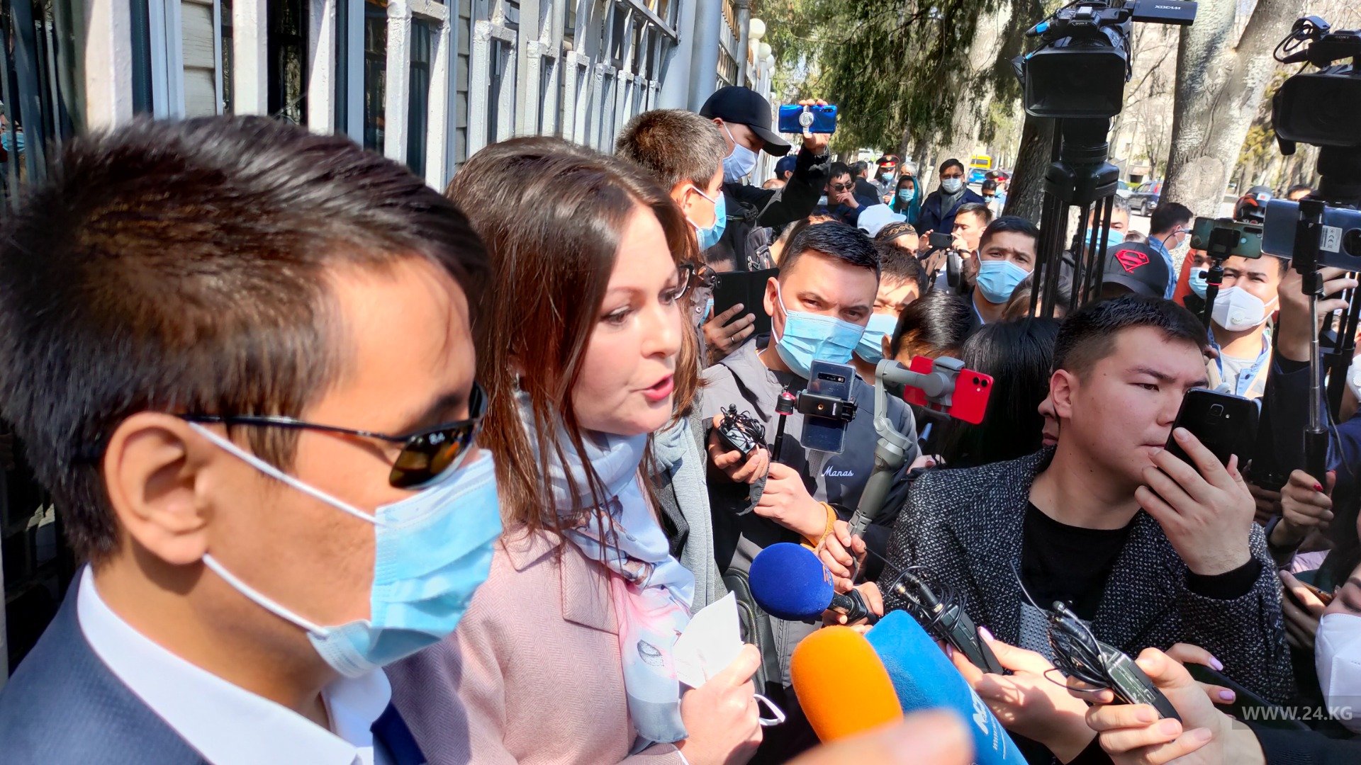 На митинг возле здания МВД вышли и депутаты Жогорку Кенеша — Наталья Никитенко, Дастан Бекешев и Айсулуу Мамашова.