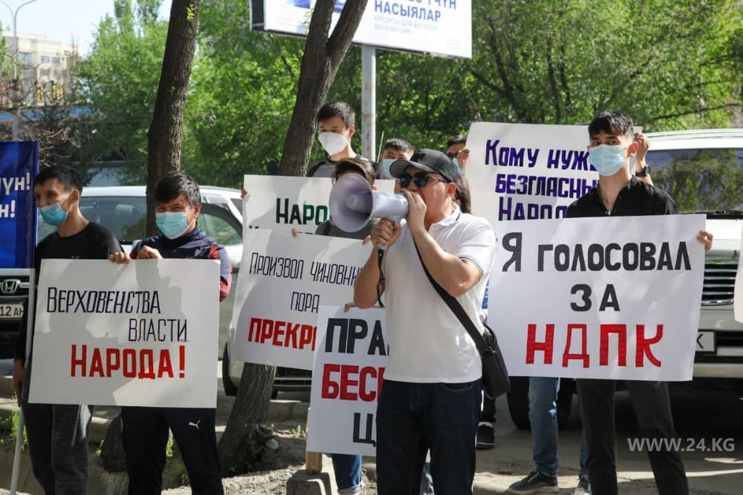 Сторонники партии НДПК митингуют у здания административного суда Бишкека.
