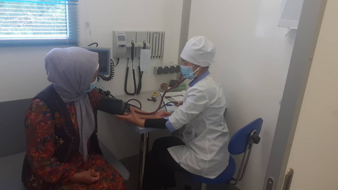 Специалисты мобильной клиники в составе терапевта, акушера-гинеколога и лаборанта провели медицинский осмотр в Баткене всем эвакуированным жителям приганичных сел и продолжают свою работу в селе Актатыр.
