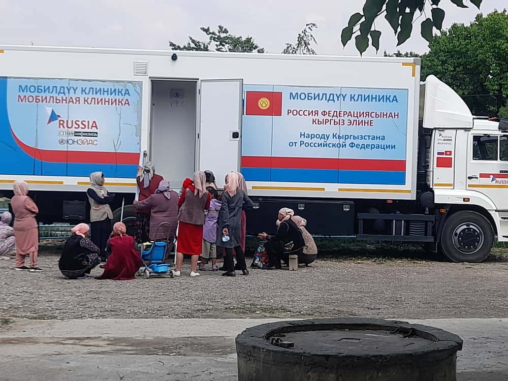 Отмечается, что мобильная клиника на базе КамАЗ доставлена в Баткенскую область в 2019 году, но из-за пандемии коронавирусной инфекции COVID-19 начала функционировать с октября 2020-го и проводит УЗИ, кольпоскопию, экспресс-тест на гепатит В, С, ВИЧ-инфекцию и сифилис.