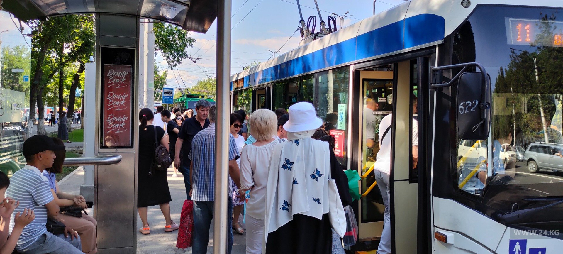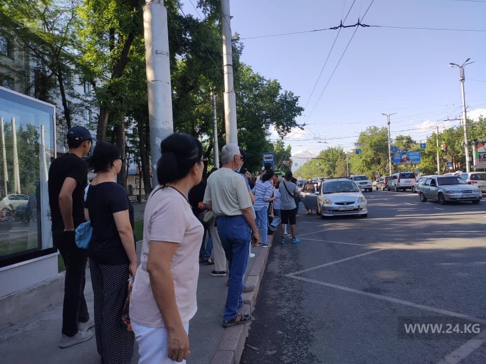 На остановках толпятся горожане, многие опоздали на работу. Вызвать такси тоже проблематично, некоторые службы взвинтили цены до 400 сомов от точки А до точки Б.