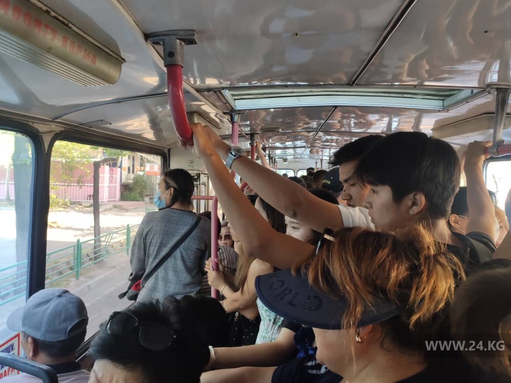 Некоторые водители автобусов уже не могут рассаживать пассажиров из-за большого наплыва. Им приходится игнорировать бишкекчан и ехать дальше.