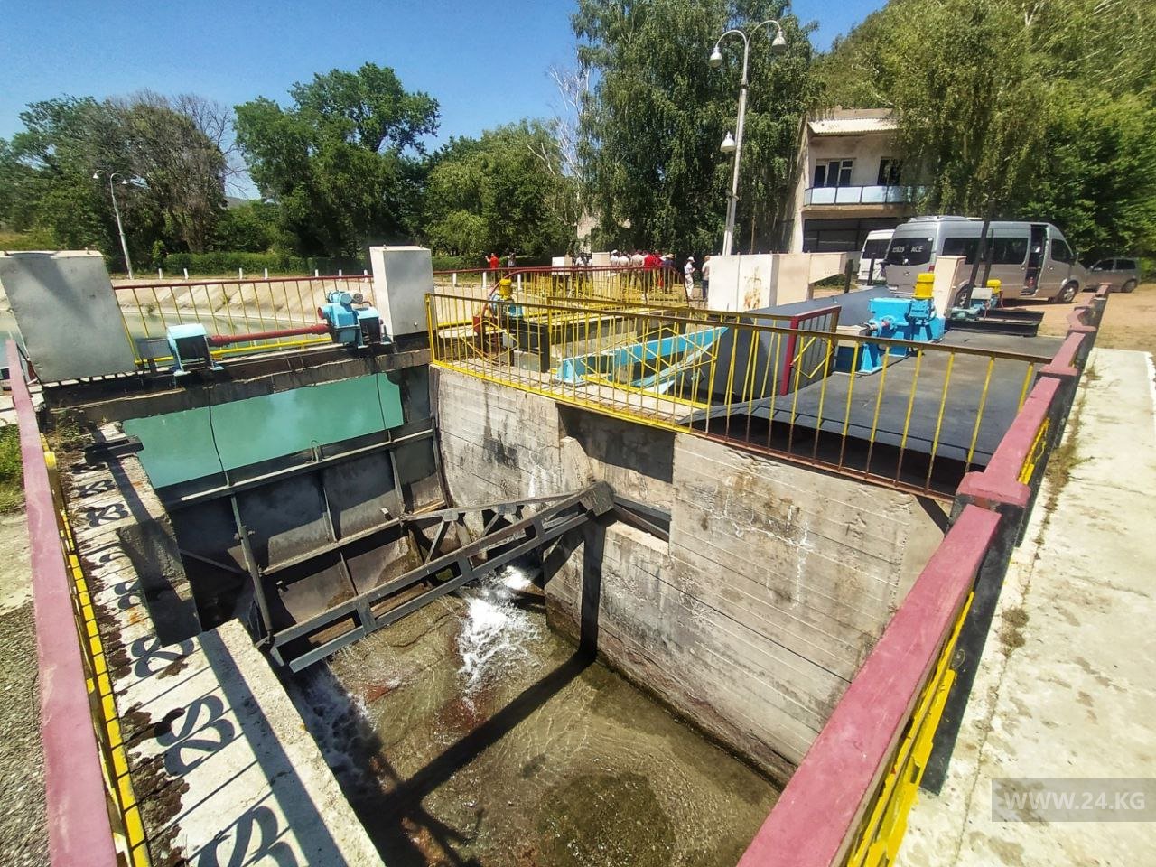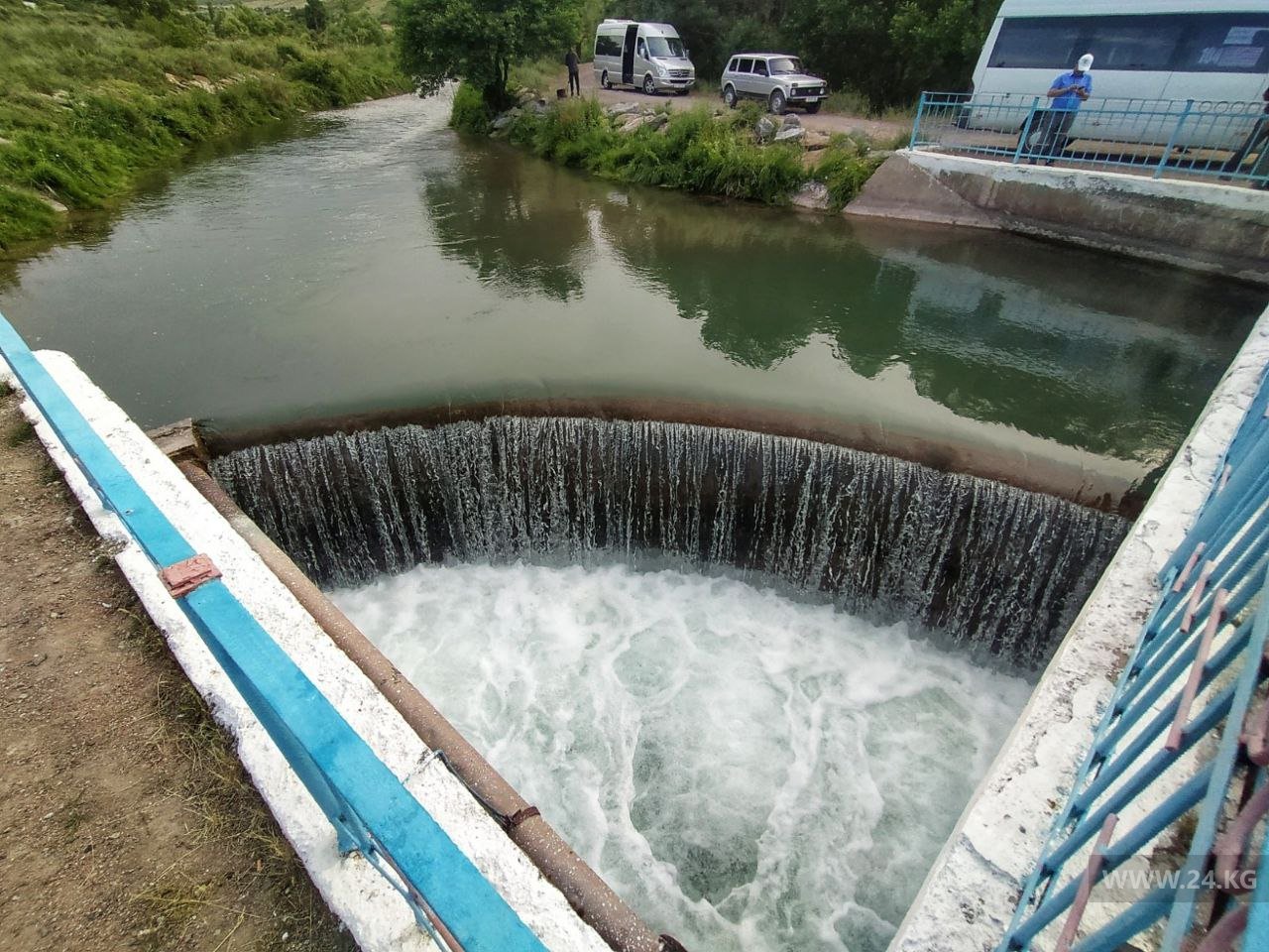 Головное водозаборное сооружение реки Кегеты — еще один водный объект, расположенный в живописном месте. Он выдает от 1 до 1,2 кубометра воды в секунду, хотя должен в среднем выдавать от четырех до шести. В паводки этот показатель доходил и до 20 кубов.«Вы увидели лишь малую часть наших объектов. Помимо водозаборов и водохранилищ, есть насосные и распределительные станции, каналы, спецтехника и многое другое.