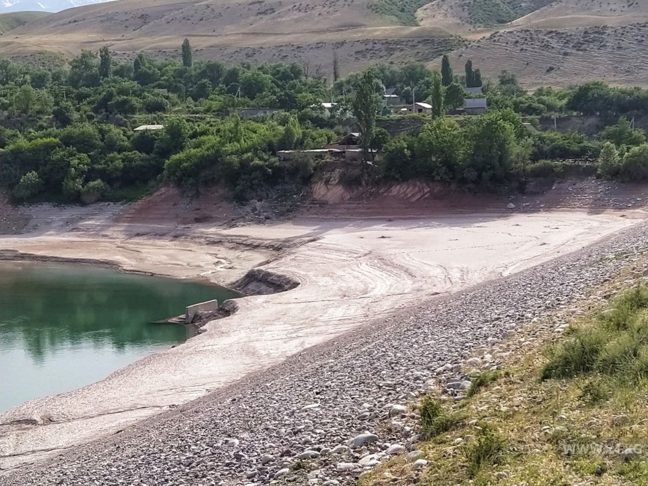 Расположенный в одном из самых живописных ущелий Иссык-Атинский бассейн декадного регулирования тоже пуст. Три миллиона кубических метров воды, накопленные в нем за зиму, разошлись за два месяца. Запасов нет. Объект сейчас работает по принципу прямотока.Проблема в том, что в горах температура не поднимается выше 20 градусов, и ледники не тают.
