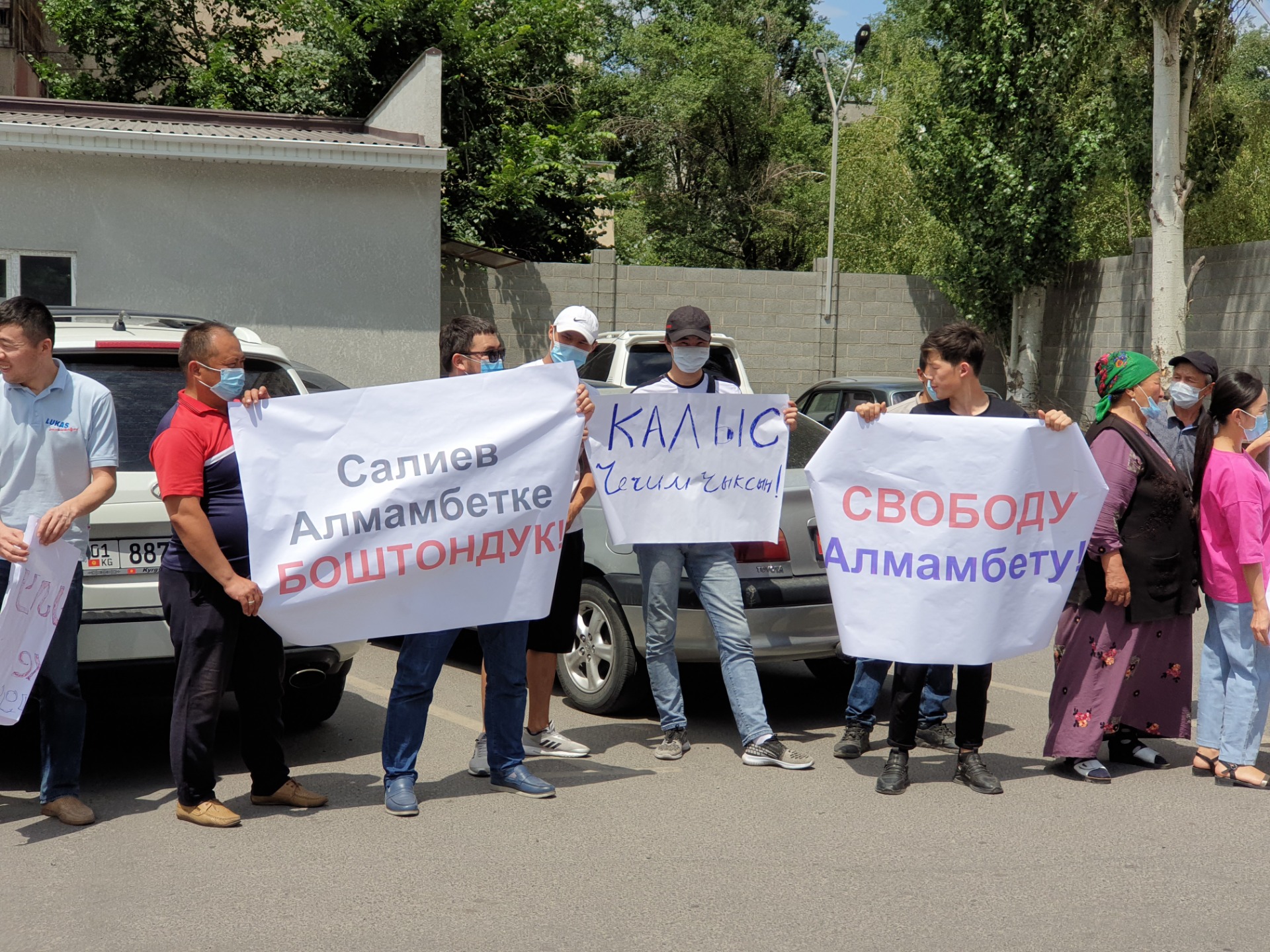 В Бишкеке у здания суда митингуют сторонники Алмамбета Салиева