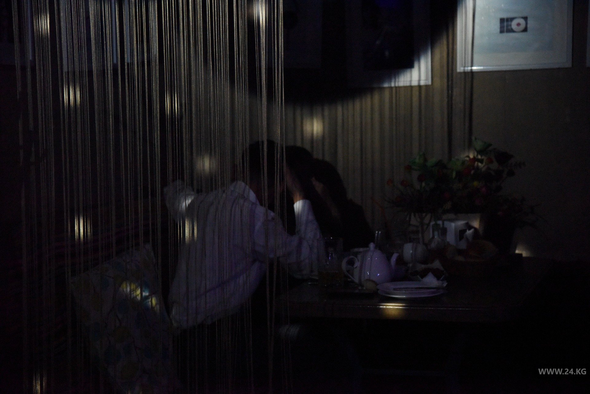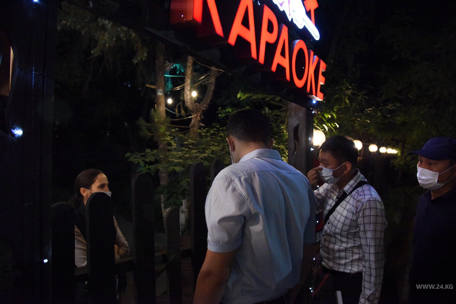 Напротив караоке находится кафе «Сария». Как сообщил его охранник, заведение закрыто с 23.00. Он также любезно согласился показать инспекции и журналистам, что происходит внутри. Действительно залы оказались пустые, клиентов не было. Инспекторы подытожили, что здесь соблюдают постановление мэрии.