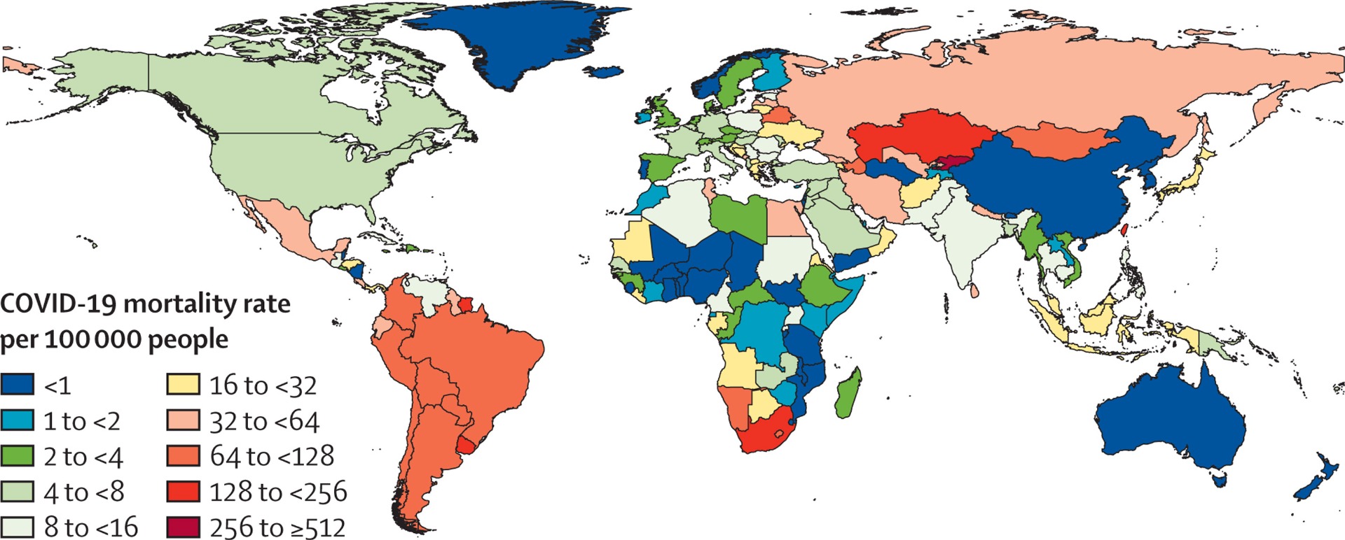 Группа исследователей смоделировала уровень смертности от COVID-19 на 100 тысяч человек в государствах мира с 1 июня по 31 августа 2021 года. В Кыргызстане он самый большой.