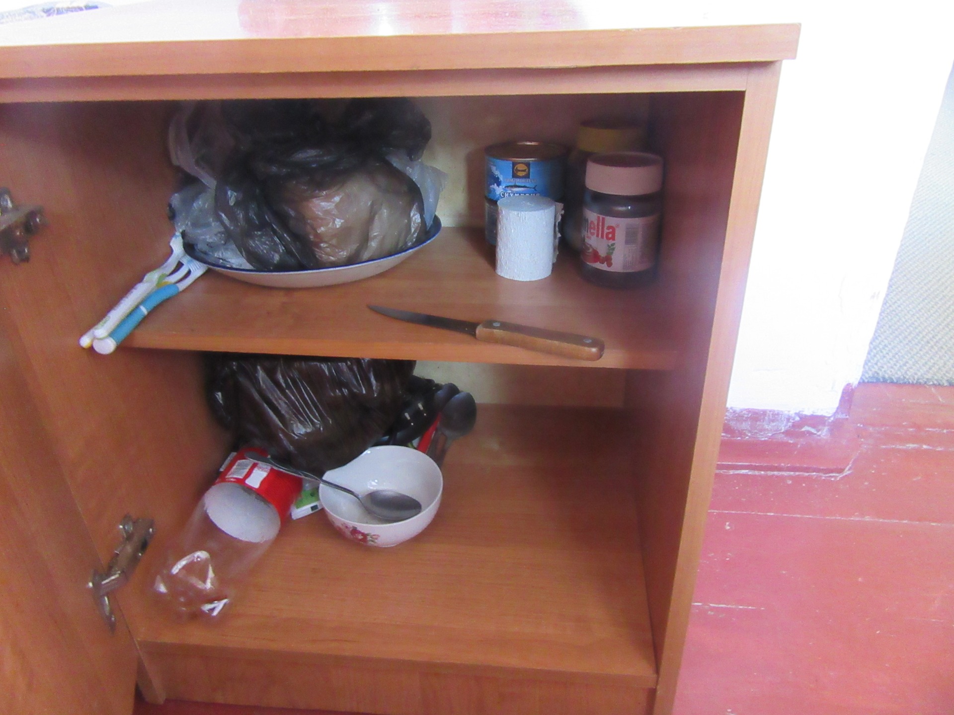 Продукты в столовой лежат на полу, но по санитарным нормам должны быть на специальной полке или на высоте 10 сантиметров от пола. Сухой чай на складе хранится в полиэтиленовом мешке из-под муки вместо бумажного контейнера или пакета. Из-за нарушения условий хранения продукция впитывает в себя влагу, что приводит к ухудшению ее качества.