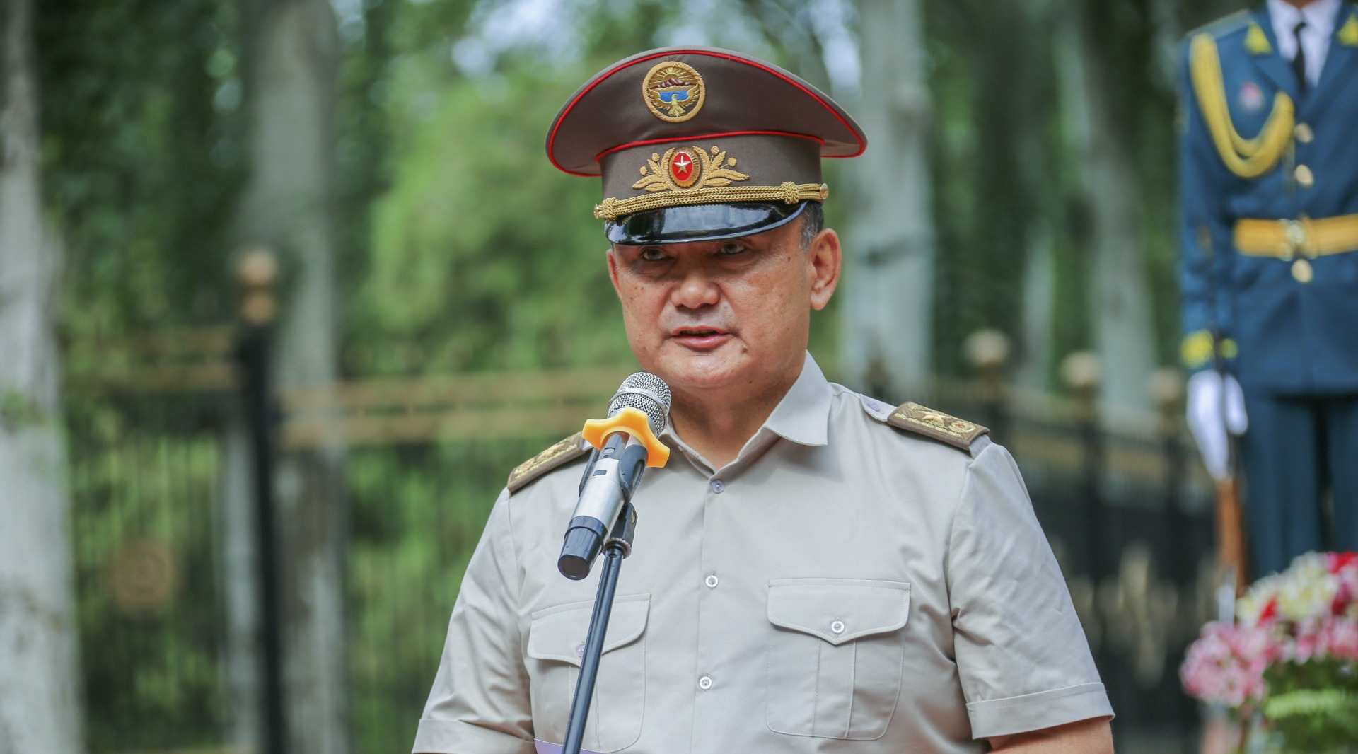 «Мы отдаем дань глубокого уважения и осознаем высокую планку, установленную для нас, нынешних защитников Отечества, нашими отцами и дедами, чей бессмертный подвиг стал образцом и эталоном воинской доблести, мужества и героизма! И пусть это будет нерушимым правилом для каждого военнослужащего как в мирное, так и в военное время», — сказал он.