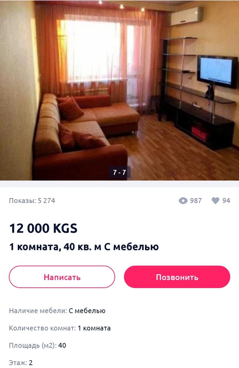 Цена съемного жилья ежемесячно, как говорится в объявлении, составляет 12 тысяч сомов. Расположена квартира якобы в девятиэтажном доме напротив Кыргызской национальной филармонии имени Токтогула Сатылганова (самый центр города). Якобы потому, что такой квартиры в районе филармонии нет.