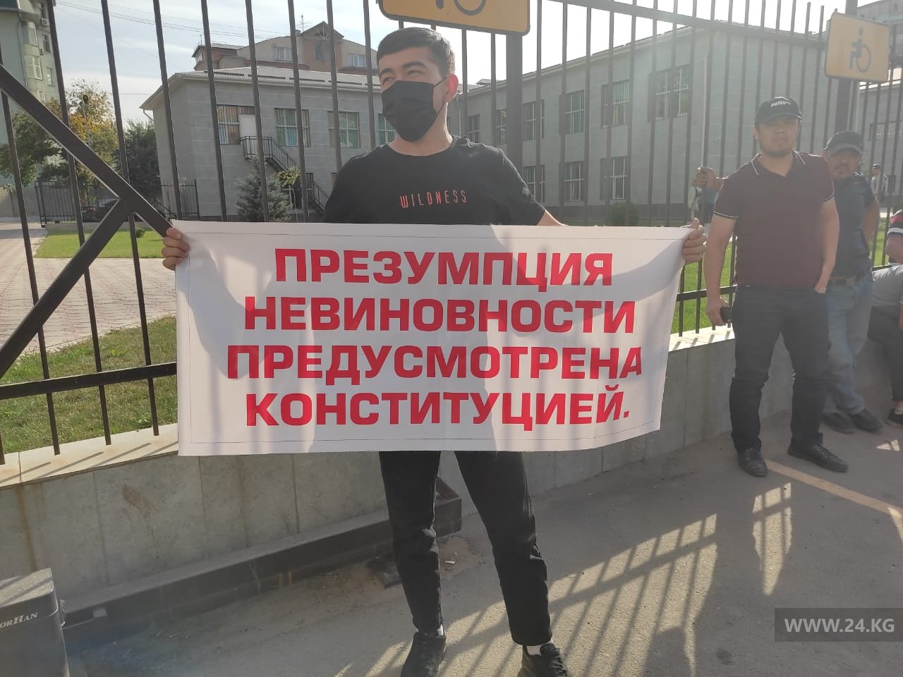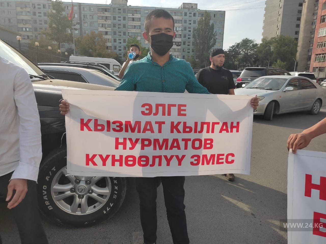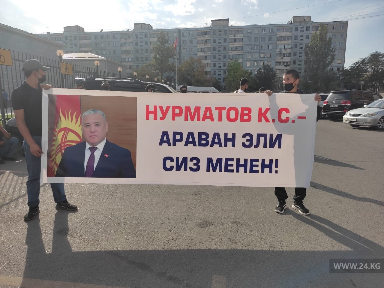 В Бишкеке у здания Первомайского районного суда проходит митинг сторонников задержанного экс-депутата парламента от фракции «Кыргызстан» Кубанычбека Нурматова.
