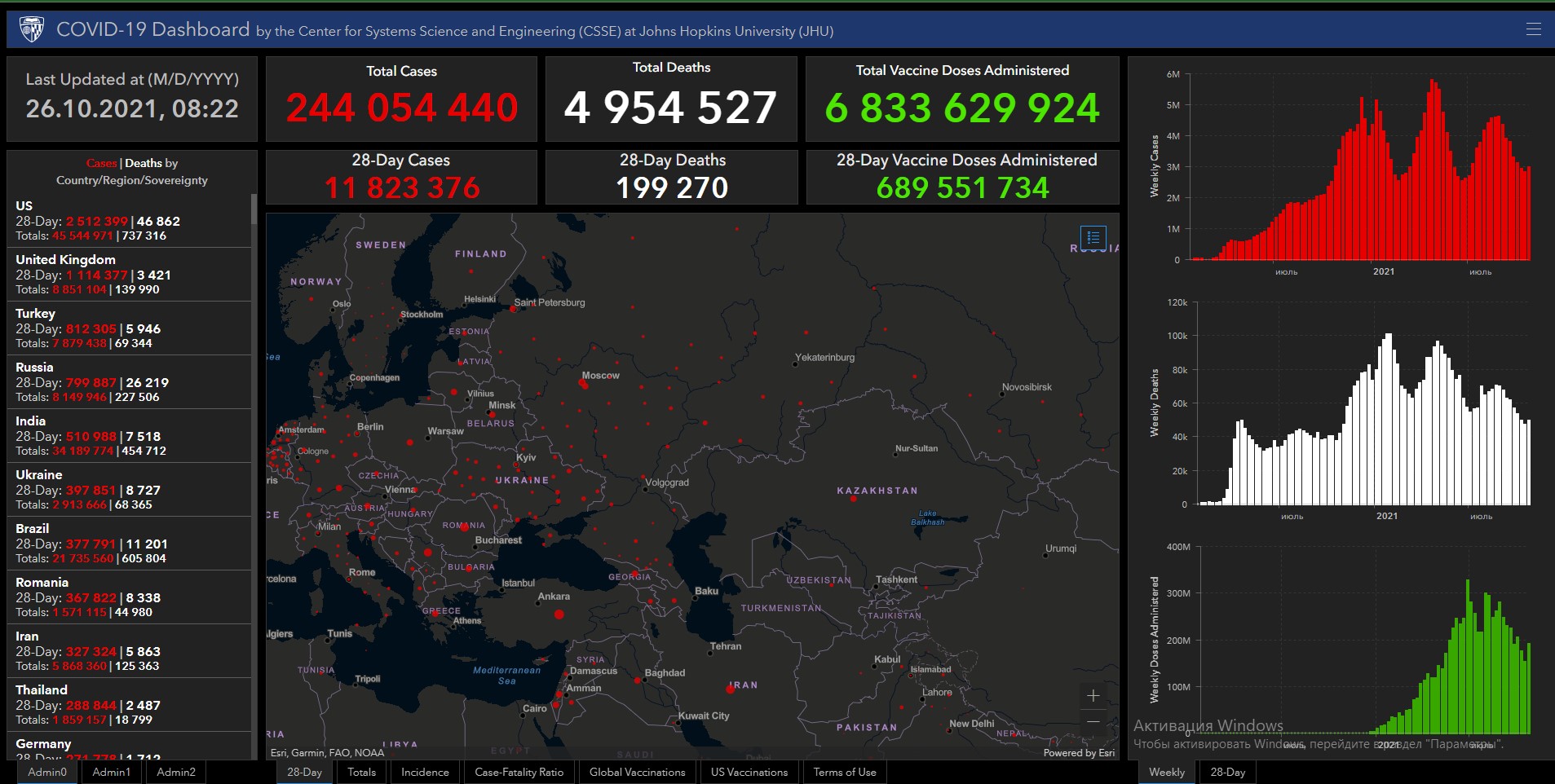 COVID-19 в мире. Заразились более 244 миллионов, умерли более 4,9 миллиона